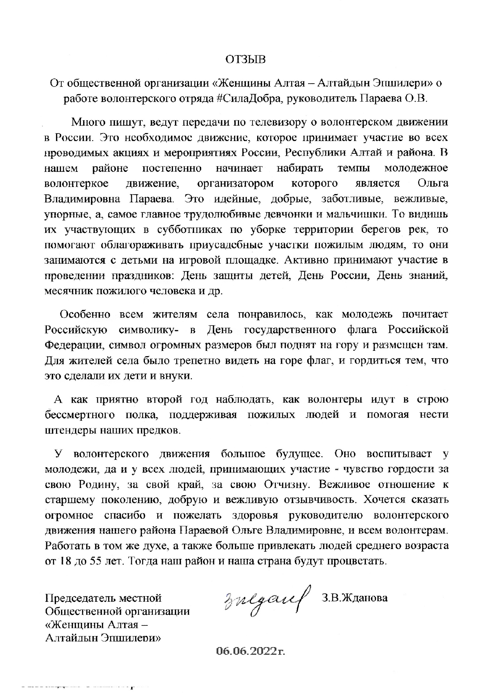 Всероссийская акция взаимопомощи #МыВместе - Более двух лет ведется работа штаба Чойского района #МыВместе. Волонтеры доставляют лекарства и продукты первой необходимости гражданам, обратившимся в штаб.запомощью В 2020 году были доставлены продуктовые наборы 919 гражданам Чойского района старше 65 лет, в акции приняло участие 34 волонтера со всех сел района. Транспорт для доставки продуктов в села Чойского района предоставляют партнеры проекта. Ежегодная акция "Добрые каникулы" В период новогодних зимних каникул волонтеры отряда #СилаДобра очищают от снега крыши домов, а также дворовые территории пожилым гражданам, людям с ОВЗ и одинокопроживающим гражданам. Всего приняло участие 32 волонтера, оказали помощь 25 гражданам.Патриотическая акция "Ветеран живет рядом" Оказана помощь ветеранам и труженикам тыла по очистке снега с крыш домов. Помогали убираться на придворовых территориях. Убирали и складывали дрова. Оказали помощь двум ветеранам и 11 труженикам тыла, в мероприятии приняли участие 23 волонтера. Организация акций в рамках весенней недели добра - Организовали проведение субботников во всех селах района. Убран мусор на улицах сел района, а также на берегах рек. Участие приняли 127 человек, волонтеры и жители Чойского района. Акции посвященные Дню трезвости- Участие в акции приняли 19 волонтеров, провели разъяснительные беседы с населением, изготовили и раздали более 200 листов о вреде алкоголя.