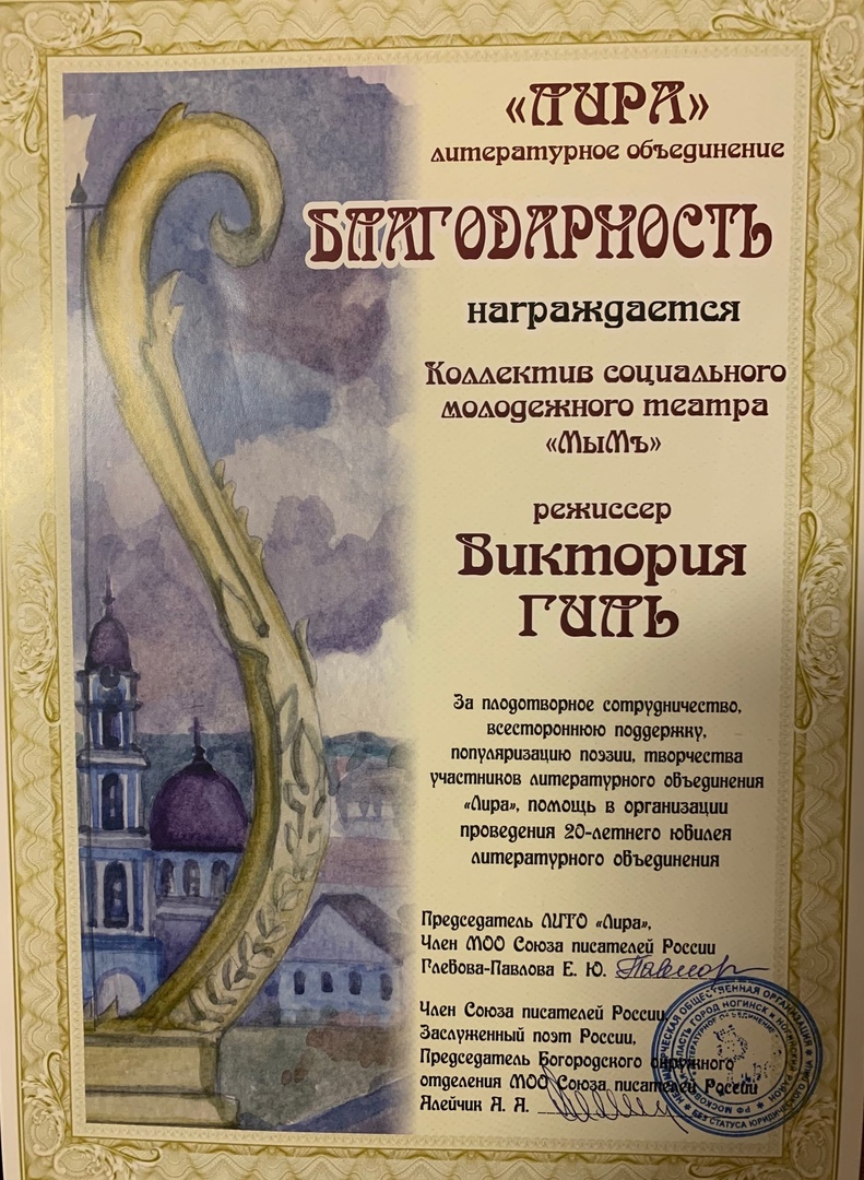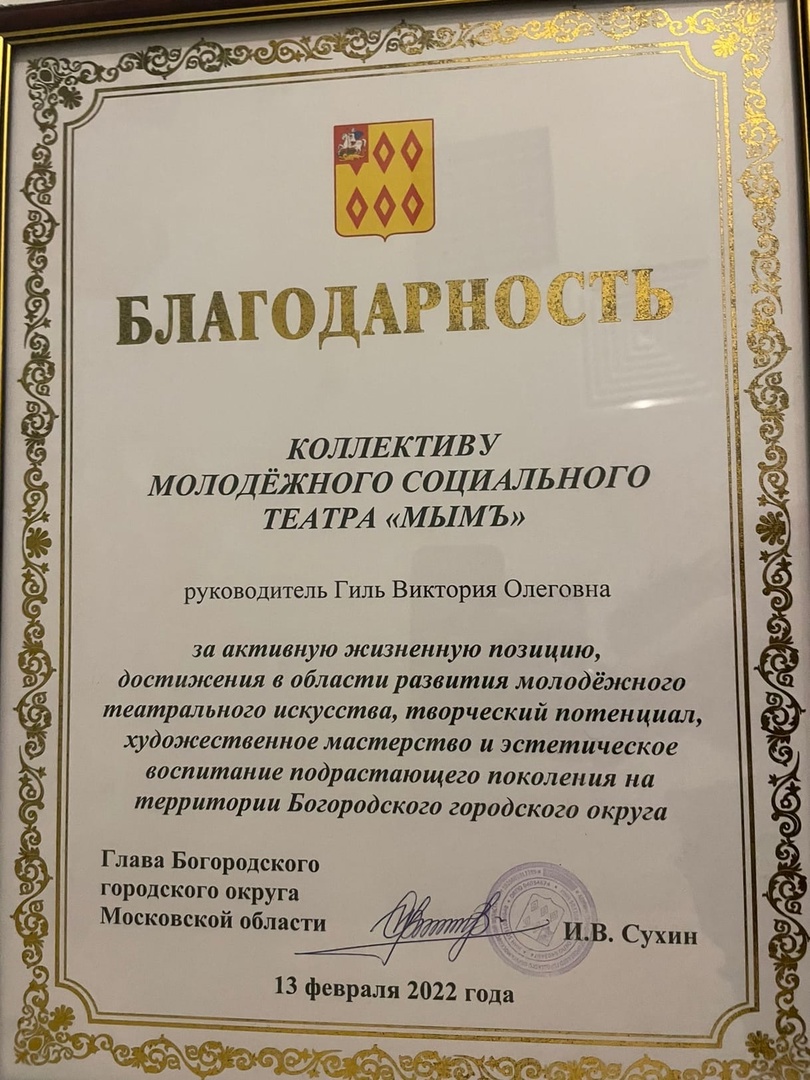 Молодёжный социальный театр «МыМъ» - уникальное объединение мыслящих, гуманистически направленных, энергичных молодых людей. Театр основан 3 сентября 2004 года в Ногинске Московской области, изначально имел название «Молодёжный любительский театр «МыМ». С 2018 года обрел имя, которое несет и в настоящее время – Молодёжный социальный театр «МыМъ».