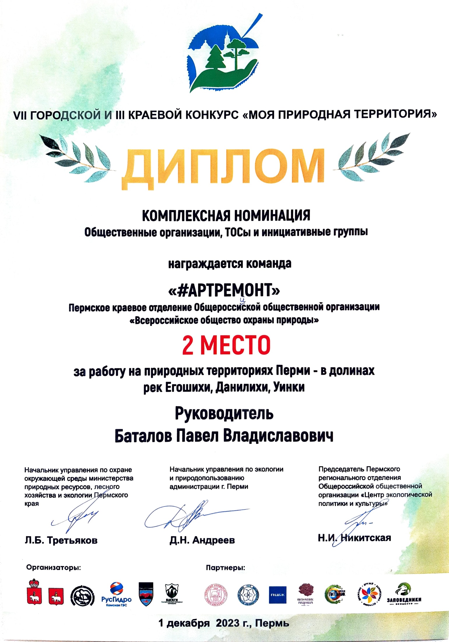 Проект #АРТРЕМОНТ направлен на повышение экологического сознания студентов, школьников г. Перми посредством участия в ремонте и обновлении внешнего облика существующих экологических арт-объектов, малых архитектурных форм (далее - МАФы), информационных и навигационных стендов в долинах малых рек Егошиха, Данилиха и Уинка г. Перми в качестве волонтёров.