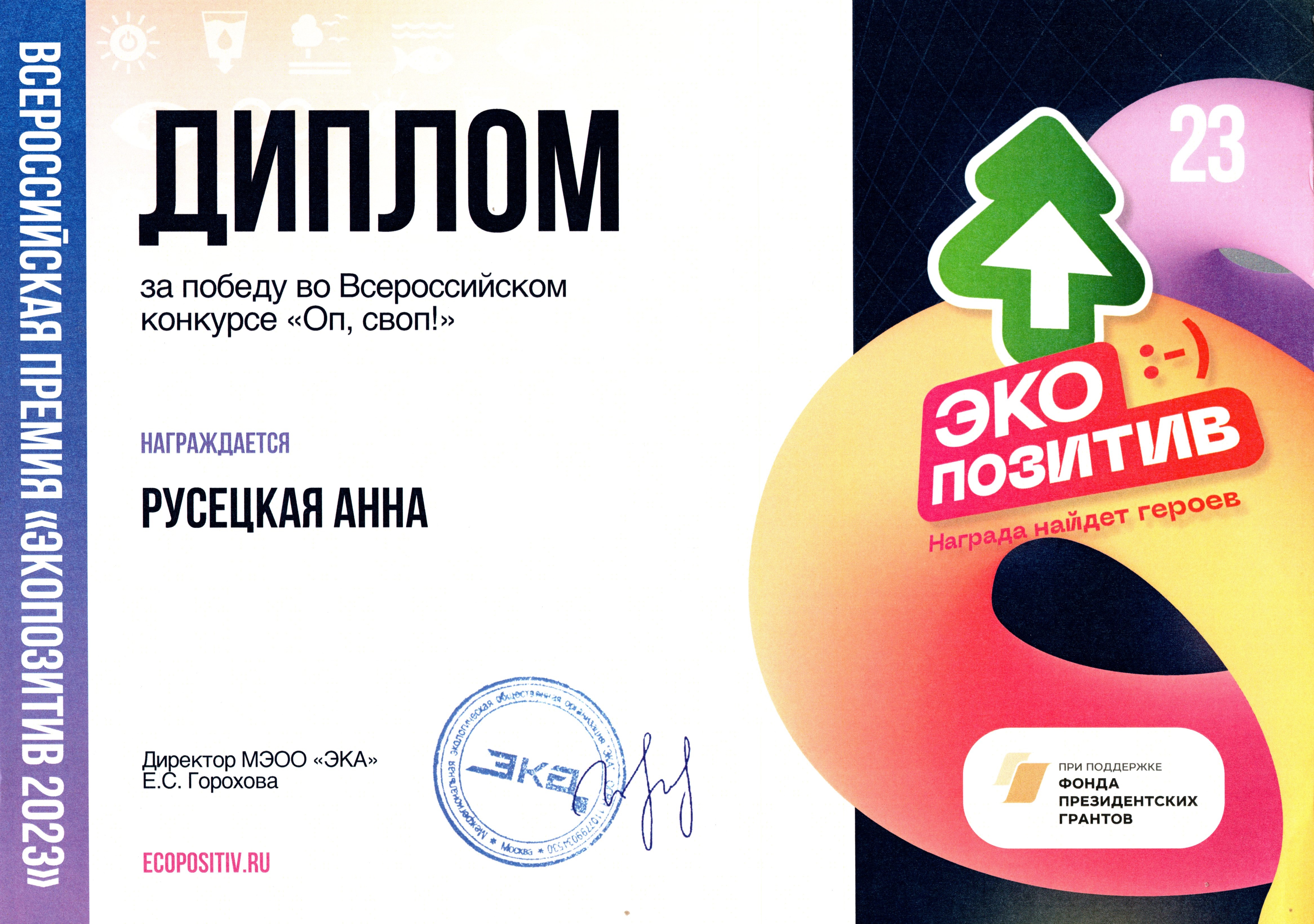 2) Призёр третьей Международной детско-юношеской премии «Экология – дело каждого» от Росприроднадзора