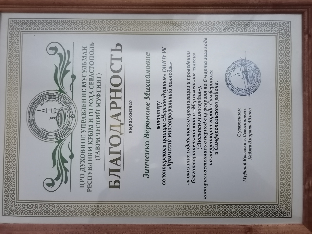 ВЦ «Неравнодушные» финалист Всероссийской премии «Больших перемен» в номинации «Больше, чем призвание». Волонтерский центр награжден Благодарностью Государственного комитета молодёжной политики Республики Крым за весомый вклад в добровольческую деятельность на территории Республики Крым. Колледж награждён Благодарностью Министерства внутренней политики, информации и связи Республики Крым за добровольческую деятельность. Деятельность волонтерского центра была представлена на стендовой выставке «Молодёжь Крыма живёт в ритме добровольчества!» в г. Симферополь. Волонтеры объединения «Неравнодушные» в 2022-2023 учебном году стали призерами Всероссийского конкурса «Большая перемена» (3 человека), и победителем (1 человек). Голосование за благоустройство общественных пространств Благодарности Проектной дирекции Минстрой РФ 9 человек, 1 человек Благодарственное письмо от Министра строительства РФ. Благодарственные письма Министерства внутренней политики, информации и связи РК78 человек. Благодарности Управления молодежи, спорта и туризма при администрации г. Симферополя 25 человек.4 человека Благодарность Главы Республики Крым,15 человек Благодарность Госкомитета молодежной политики Республики Крым, .13 человек Благодарственные письма Госкомитета молодежной политики Республики Крым. Добро.Центр по итогам мониторинга 2024 вошел в ТОП -150 Добро.Центров.