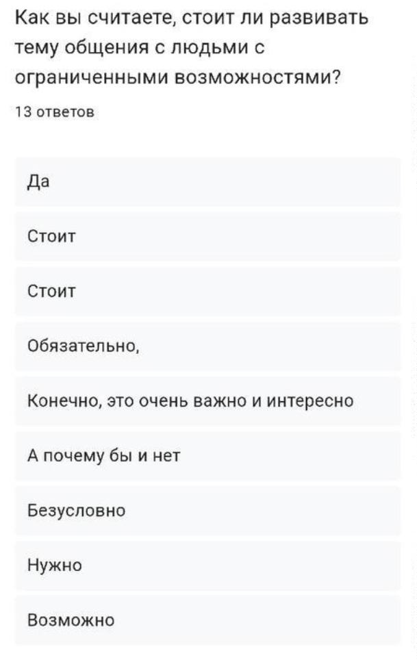 Более 150 участников посетили обучающий фестиваль. В ходе проекта участники узнали информацию о взаимодействии с людьми с ОВЗ и получили теоретические материалы. Сотрудники реабилитационного центра проинформировали всех, как они могут поучаствовать в мероприятиях с людьми с ОВЗ.