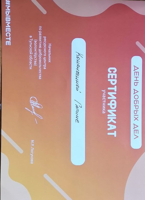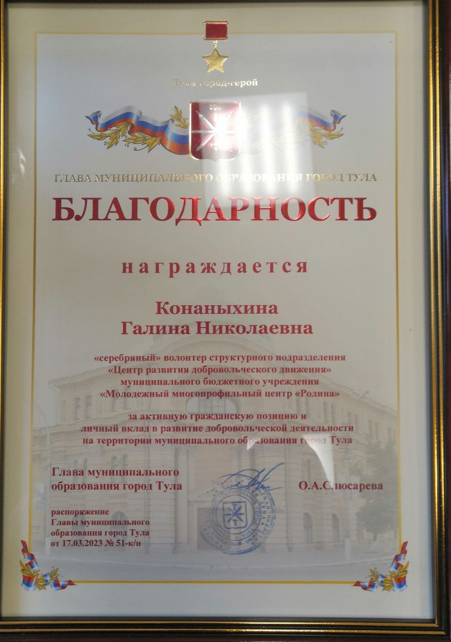 12 волонтеров-участников проекта награждены благодарностями Главы муниципального образования г. Тула и главы администрации г. Тулы.