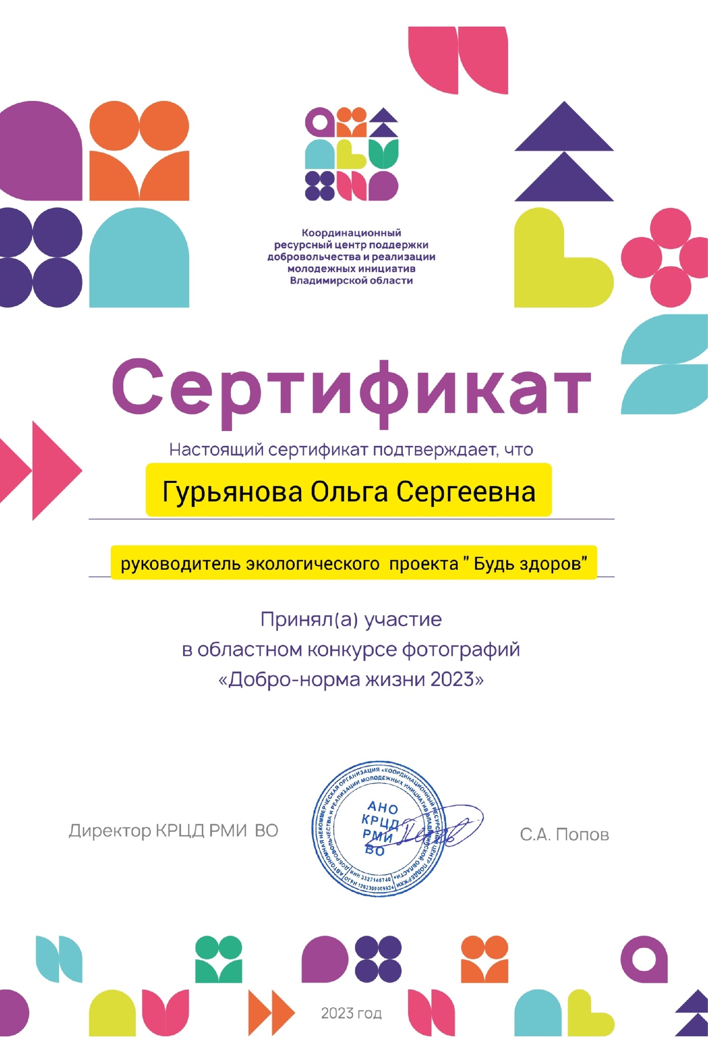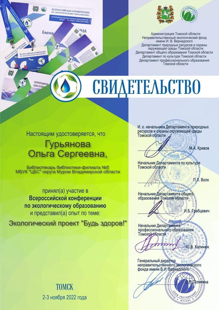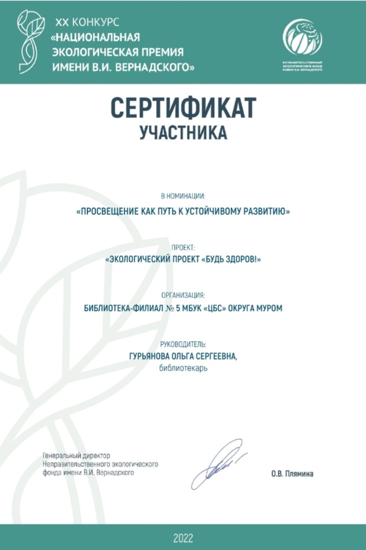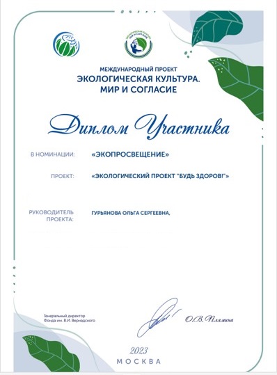 • созданием сообщества в контакте (более 2000 подписчиков) и сайта экологического проекта "Будь здоров" (более 40 публикаций), созданием цикла игр "От экологии к здоровому образу жизни" в онлайн и оффлай форматах.