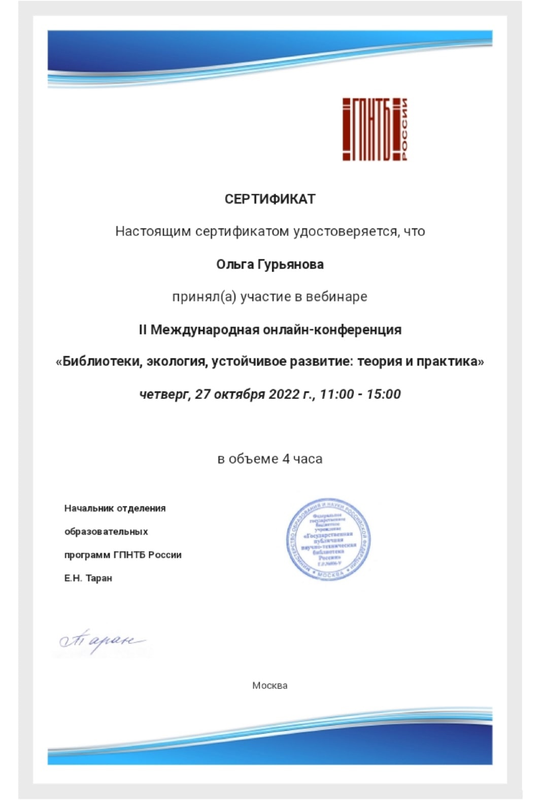 • участием во ВСЕРОССИЙСКИХ или МЕЖДУНАРОДНЫХ мероприятиях (конференциях, форумах, премиях, конкурсах - более 8 выступлений),
