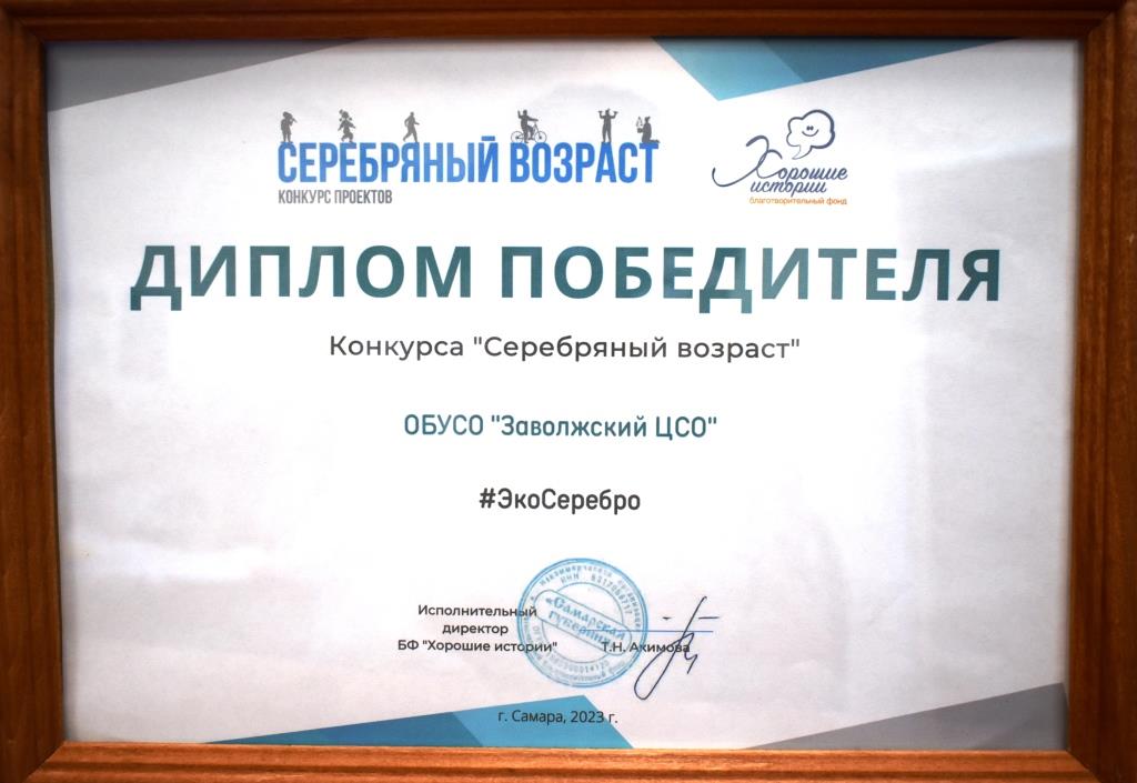 В 2023 году проект #ЭкоСеребро стал одним из сорока победителей конкурса социально-значимых проектов для старшего поколения «Серебряный возраст» и ОБУСО «Заволжский ЦСО» получил на его реализацию грант в размере 95961 рубля.
