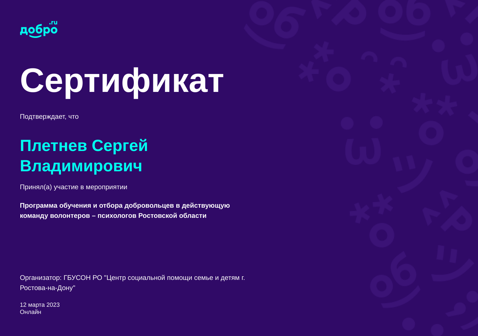 Организация является постоянным и активным участником общегородских, региональных и федеральных мероприятий и проектов. В 2019 году наш проект «Профилактика табакокурения у подростков и молодежи города Ростова-на-Дону и вовлечение их в волонтерскую деятельность проекта "Город без табачного дыма"» стал победителем конкурса Фонда Президентских грантов и был успешно реализован. В 2021 году организация стала полуфиналистом Международной премии МЫВМЕСТЕ в номинации «Волонтёры и НКО».