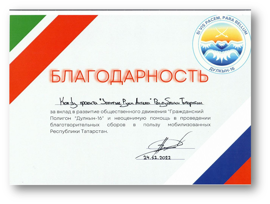 Проект Ценим Жизнь – это развитие регионального проекта Золотые руки Ангела-Татарстан, которое начало свою работу в сентябре 2022 г.