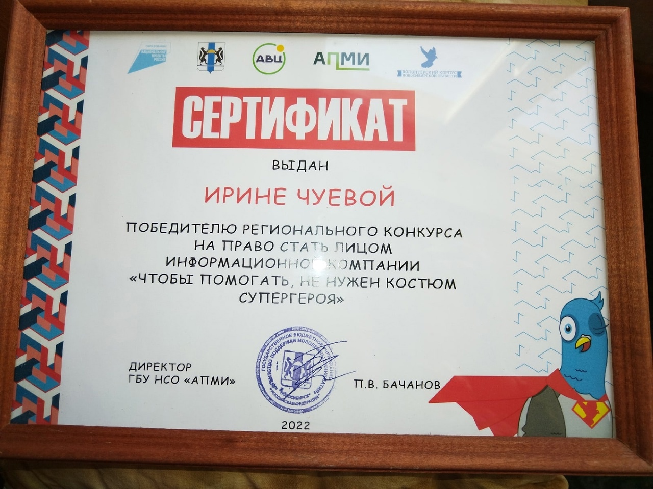 Совместно с молодой дружиной посажены:- Пихты Победы (2015г.),-Сибирская вишня(2016г.),-Аллея Сибирских Елей(2018г.), -Аллея Туй(2021г.). -Сделан рокарий, сухой ручей, клумба в виде пирамиды, экспозиция из растений в честь 75 летия Победы. Поставлены малые формы: красивое ограждение, лавочки и две мини-беседки у места кормления уток. Установлен информационный щит в честь фронтовика по проекту автора волонтера-наставника.