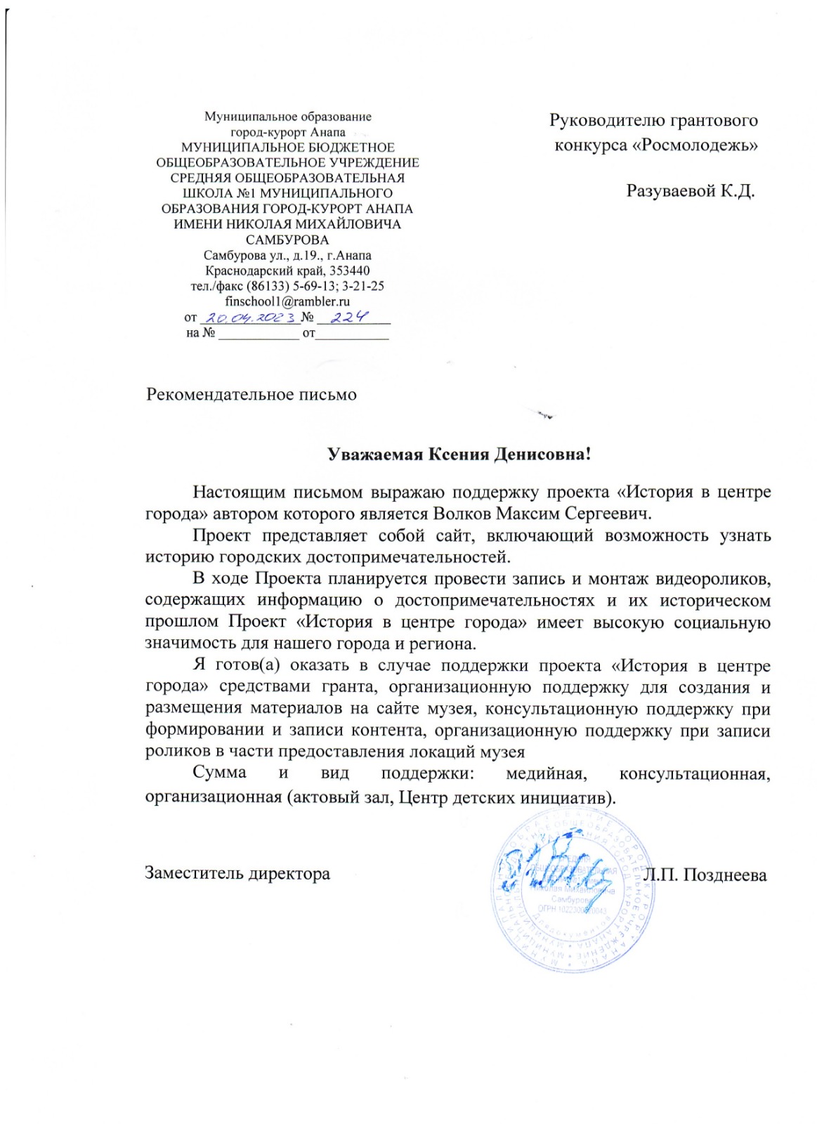2. Проект подан на грантовый конкурс от физических лиц Росмолодежь
