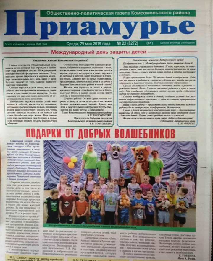 Проект решает социально-культурную проблему- организация и проведение праздников детства - Дней рождения для детей из малообеспеченных, многодетных и неблагополучных семей, детей-инвалидов, детей с ограниченными возможностями здоровья, детей, попавших в трудную жизненную ситуацию и оставшихся без попечения родителей, на территории ещё 11 сёл и посёлков Комсомольского района, отдалённых от районного центра, города Комсомольска-на-Амуре.