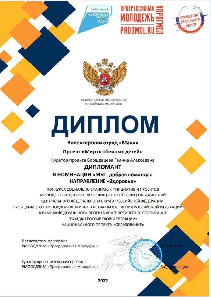 3. В процессе деятельности происходит профориентация волонтеров - старшеклассников не только из МКОУ «Гимназия», но и других учебных заведений и уже 3 волонтера-выпускника гимназии планируют обучаться по профессиям: дефектолог, детский реабилитолог, психолог.