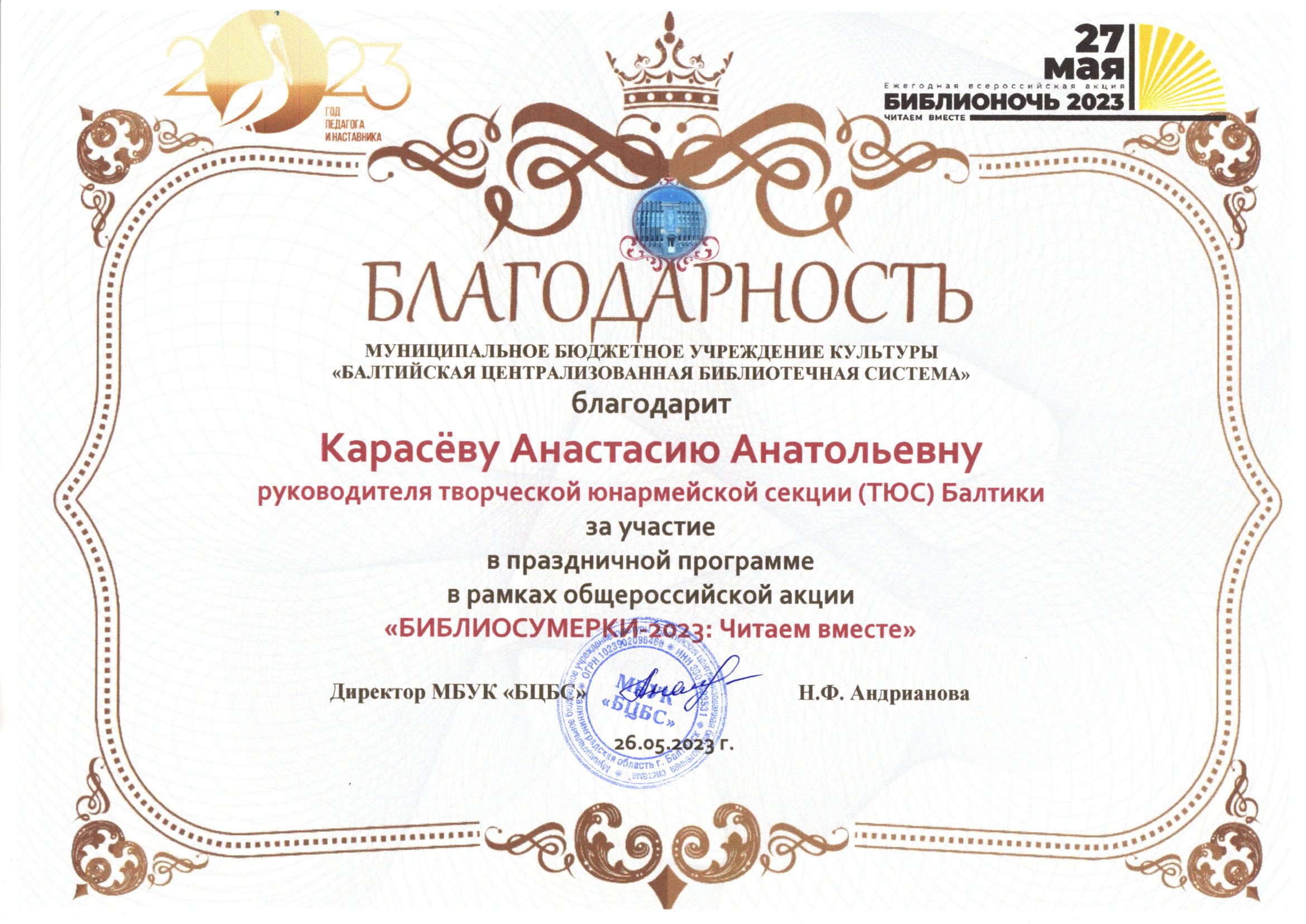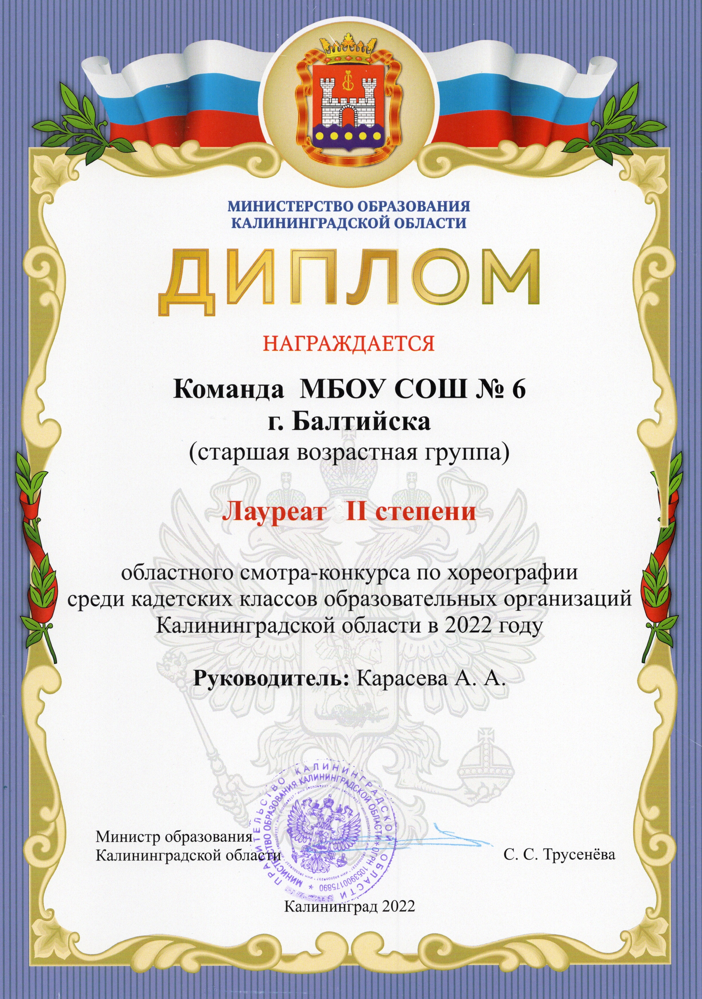 5. По словам самих танцоров всех возрастов клуба «Рандеву», в рамках которого проходят подготовительные занятия к танцевальным вечерам, у них улучшаются физические данные, связанные с пластикой танца, осанкой, развивается чувство вкуса, женственности у дам и мужественности у кавалеров. Касаемо служащих Балтийского флота, полезными становятся знакомства, раскрепощение, отвлечение от бытовых и служебных неурядиц, особенно для вновь прибывших военных и членов их семей. На проводимых мероприятиях присутствует позитивный настрой, прививается эстетический вкус, становится разнообразнее свободное время, при этом поддерживается стремление к здоровому образу жизни: https://vk.com/video/playlist/-192270007_32, https://youtu.be/fABVNKENK-Q