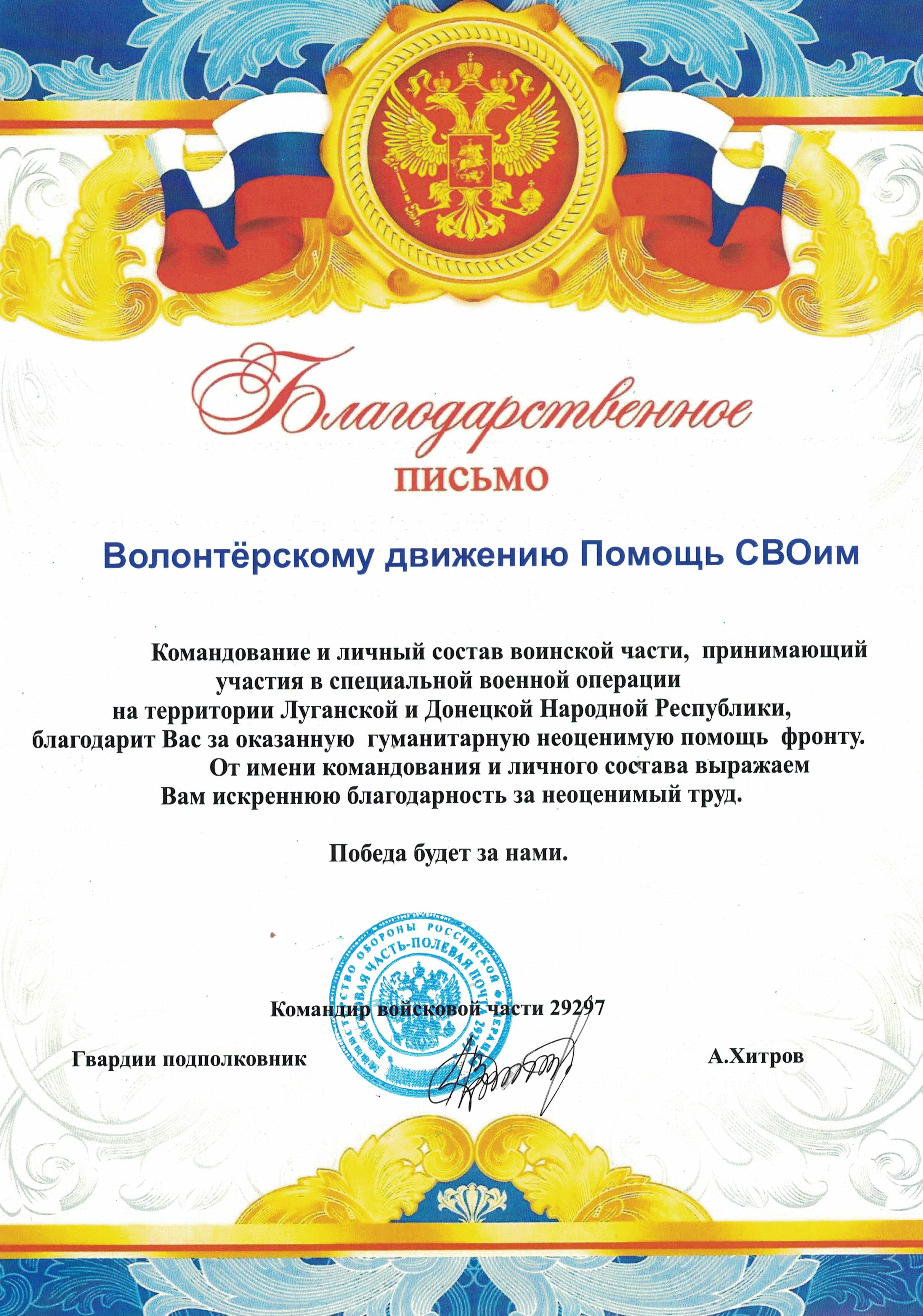 Помощь СВОим - это поддержка подразделений российской армии, а также добровольческих отрядов, принимающих участие в СВО, включая медицинские отряды, батальоны и госпитали. Только из рук в руки.