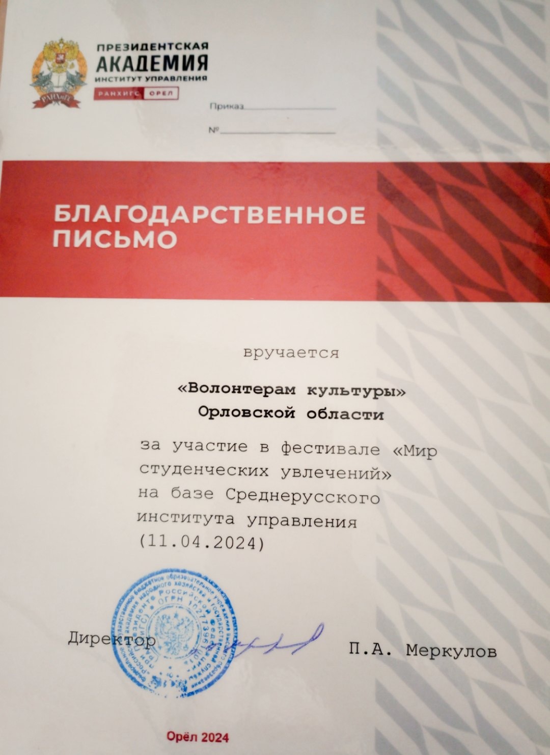 Так же в рамках программы есть направление "Обучение и мотивация волонтеров". Волонтеры культуры Орловской области реализуют образовательные