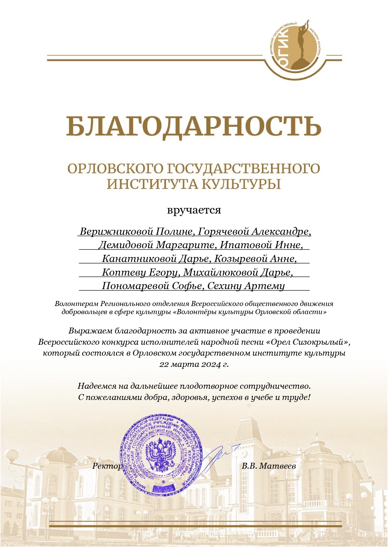 волонтерских объединений и физических лиц, которые вносят большой вклад добровольческую деятельность на территории Орловской области.