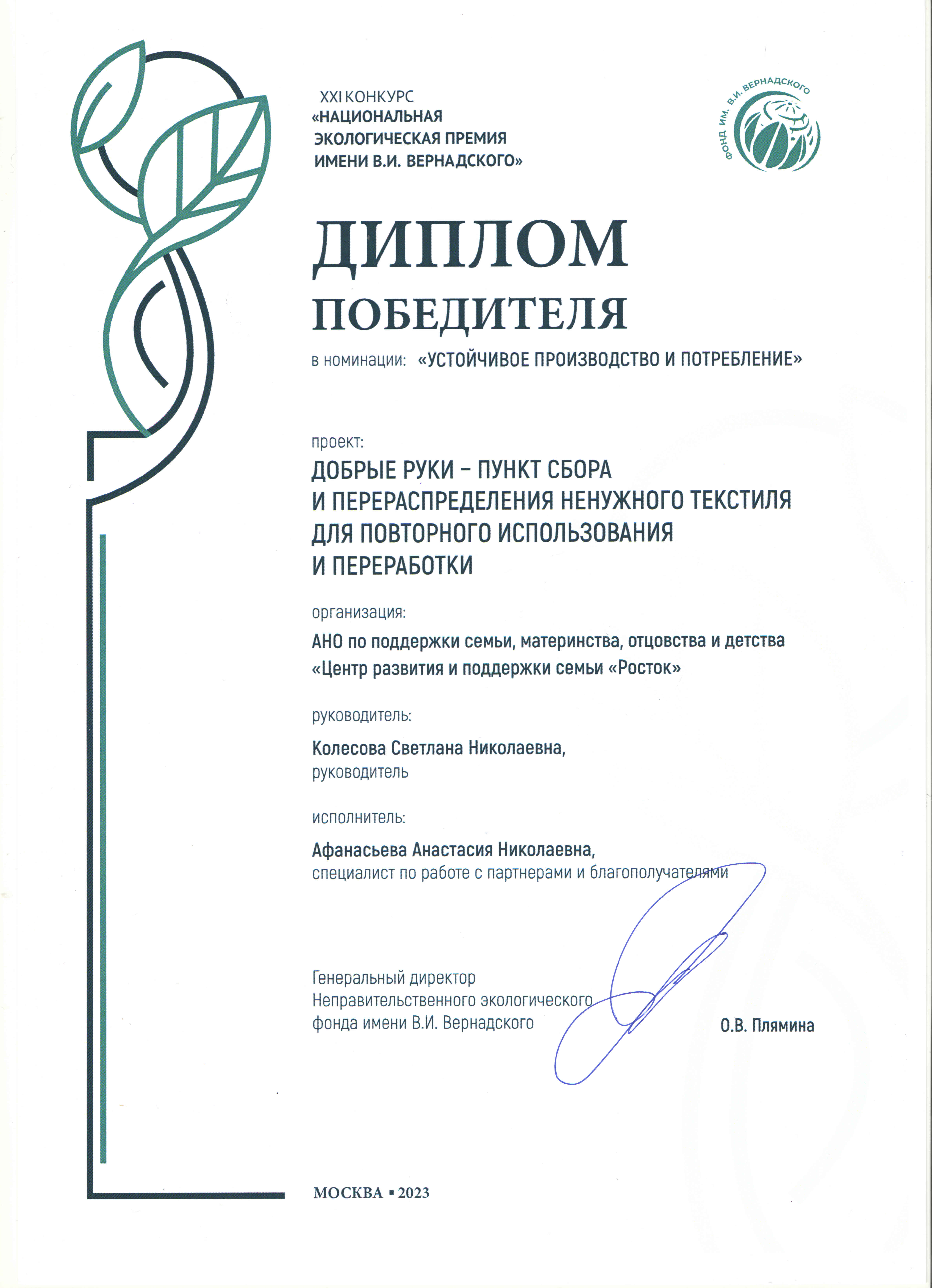 Сокращение объема вывозимых на полигоны текстильных отходов путем сбора ненужной одежды и её перераспределения на повторное использование и переработку, а также повышение уровня экологической осведомленности населения.