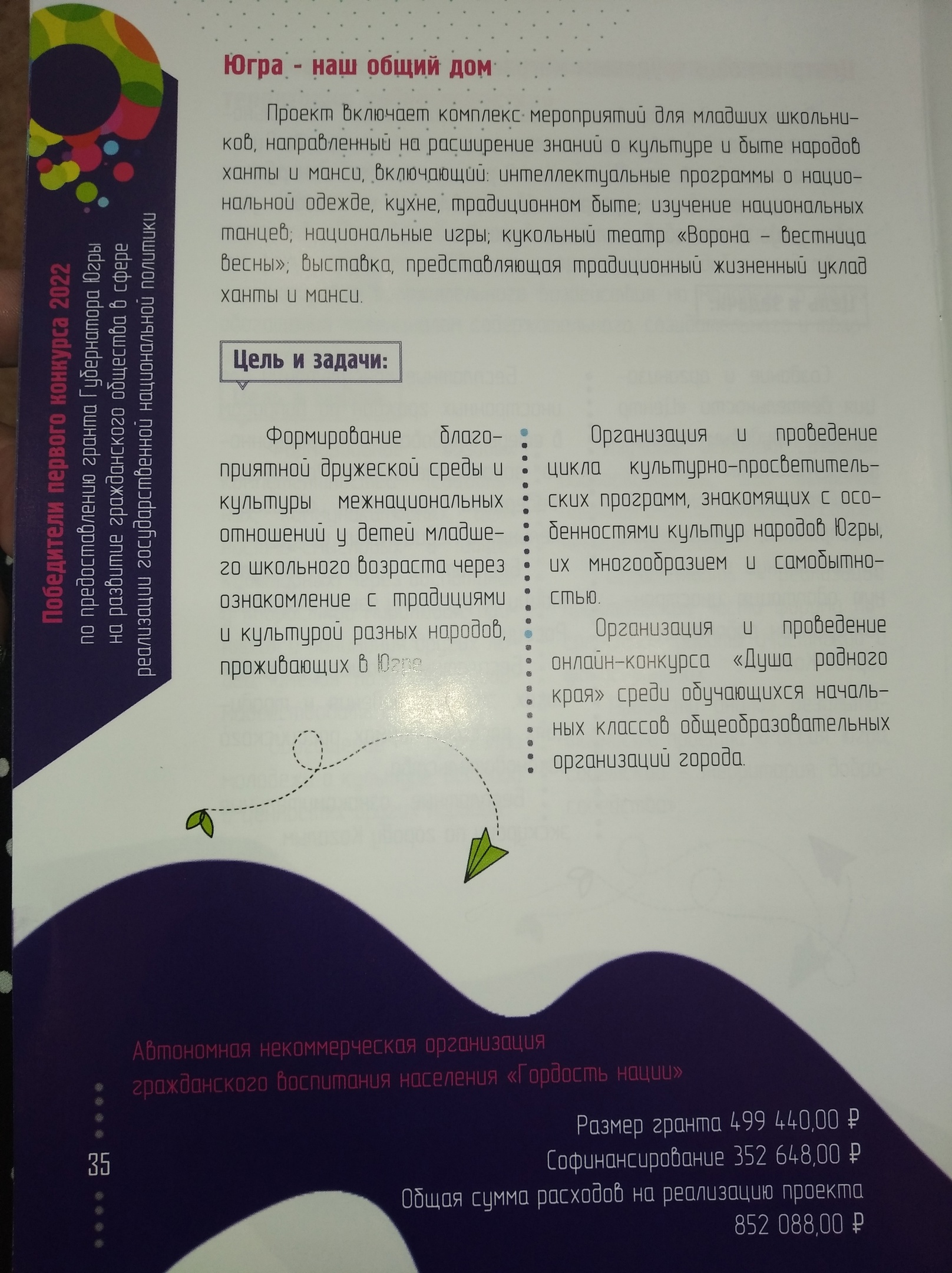 3. Внедрены и опробованы новые формы культурно-просветительской работы (кукольный театр) в деятельность по воспитанию межнационального согласия в детско-подростковой среде. Проект "Югра наш общий дом", вошёл в сборник лучших практик СО НКО ЮГРЫ в сфере реализации государственной национальной политики в 2021-2022 годах.
