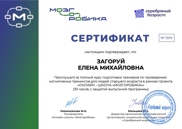 уровень знаний людей старшего возраста, принимающих участие в проекте, о проблемах когнитивного здоровья повысился более чем на 70%;