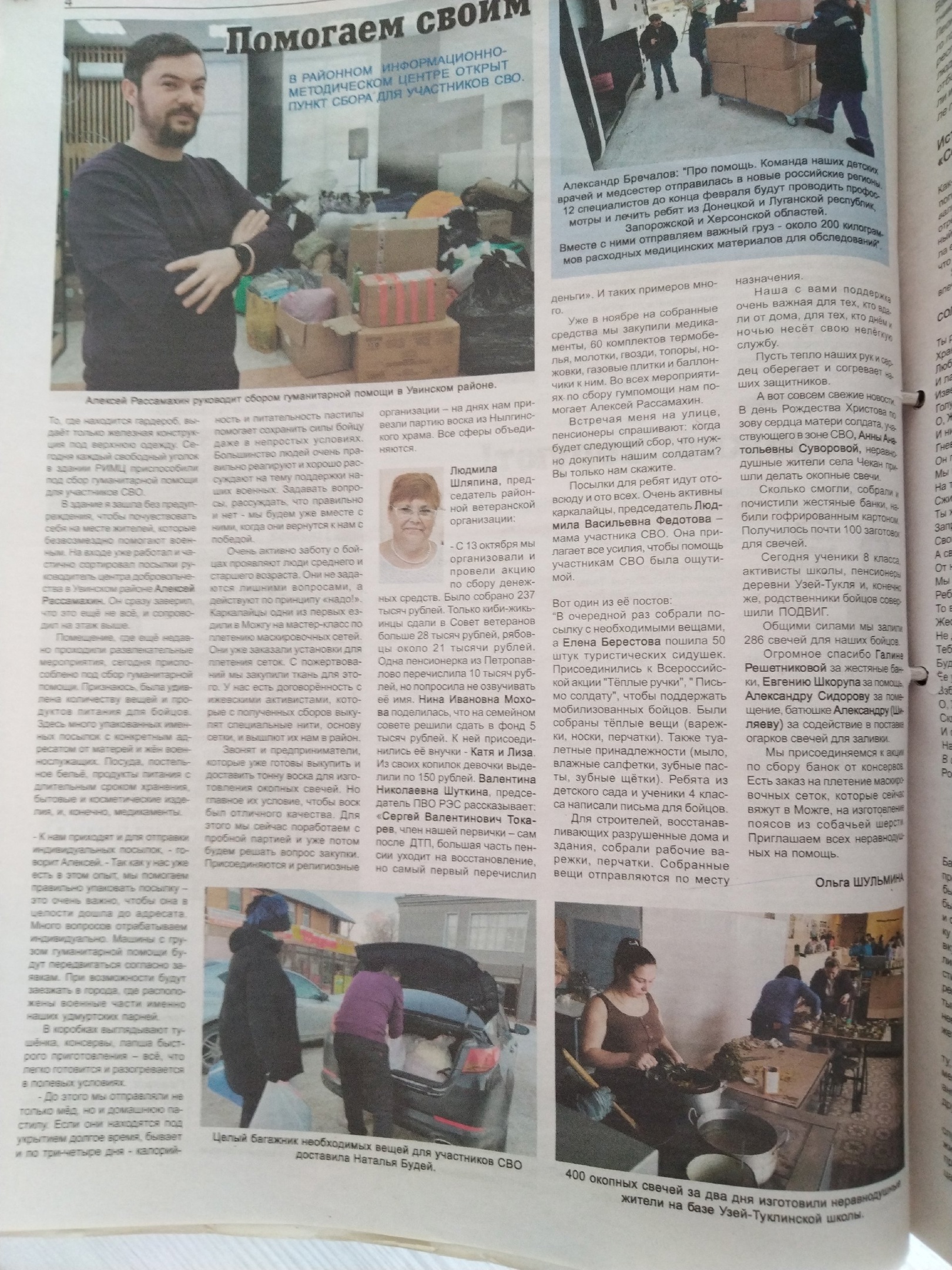 По Указу Президента РФ от 21.09.2022 г. №647 "Об объявлении частичной мобилизации в РФ" с территории Увинского района были призваны мобилизованные граждане и добровольцы. Наша задача-задача настоящего гражданина оказать поддержку и помощь этим семьям и участникам СВО. В рамках проекта«Тепло для СВОих» было отшито более 300 штук нижнего белья, более 100 футболок, сплетено 90 маскировочных сетей, залито 10000 блиндажных свечей, сплетено 120 тактических браслетов для выживания и всё это было отправлено в зону СВО. Помощь и поддержку получило более 100 военнослужащих.Не остались без внимания семьи военнослужащих, для них были организованы психологические и танцевально-спортивные мероприятия. На территории Увинского района, при Главе муниципального образования создана и продолжает деятельность рабочая группа по оказанию помощи семьям мобилизованных: доставке дров для отопления, ремонту домов, расчистке снега и др. В процессе неоднократных встреч с бойцами, их семьями было выяснено, что существует большая потребность и в сидушках - пятиточках.