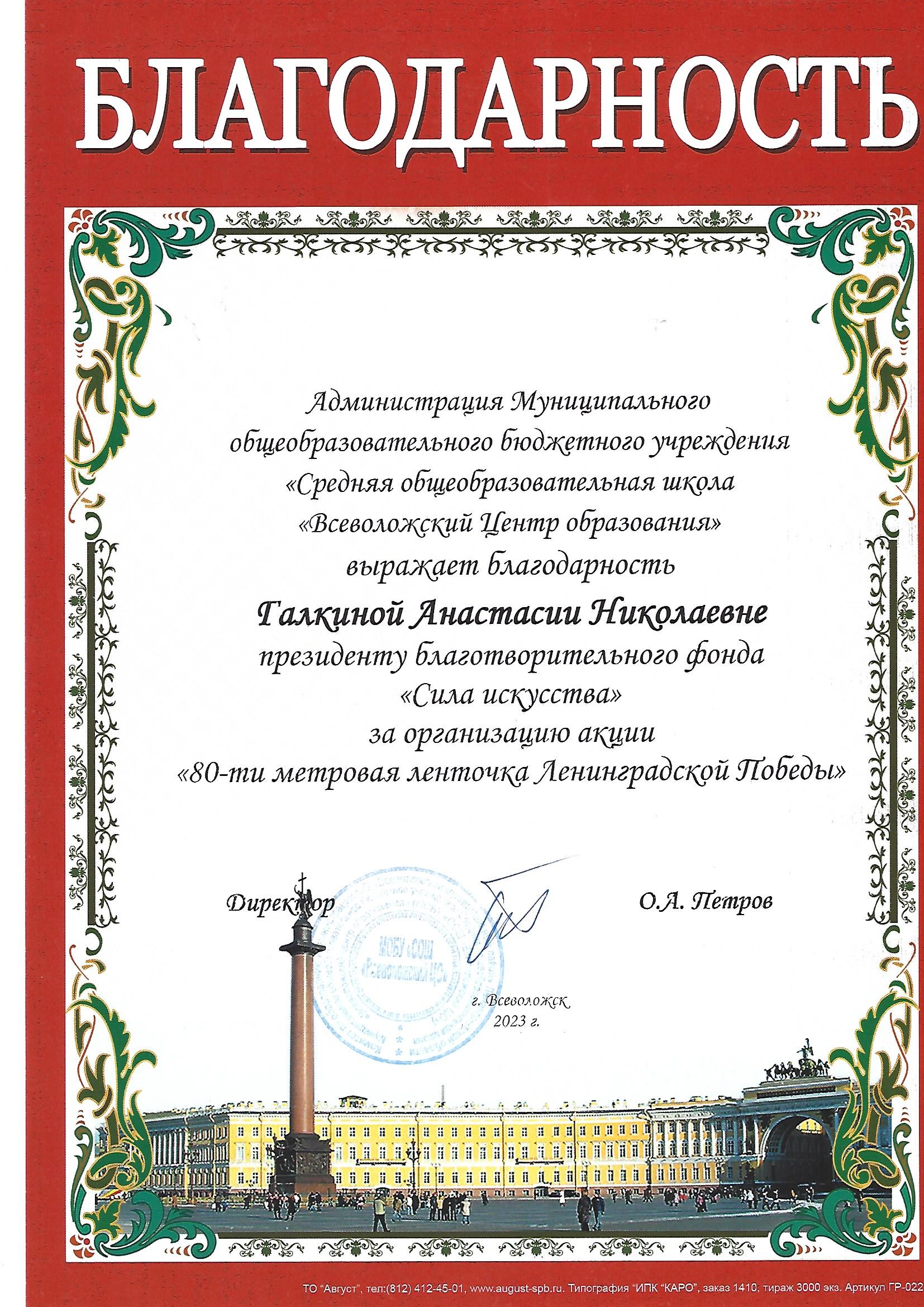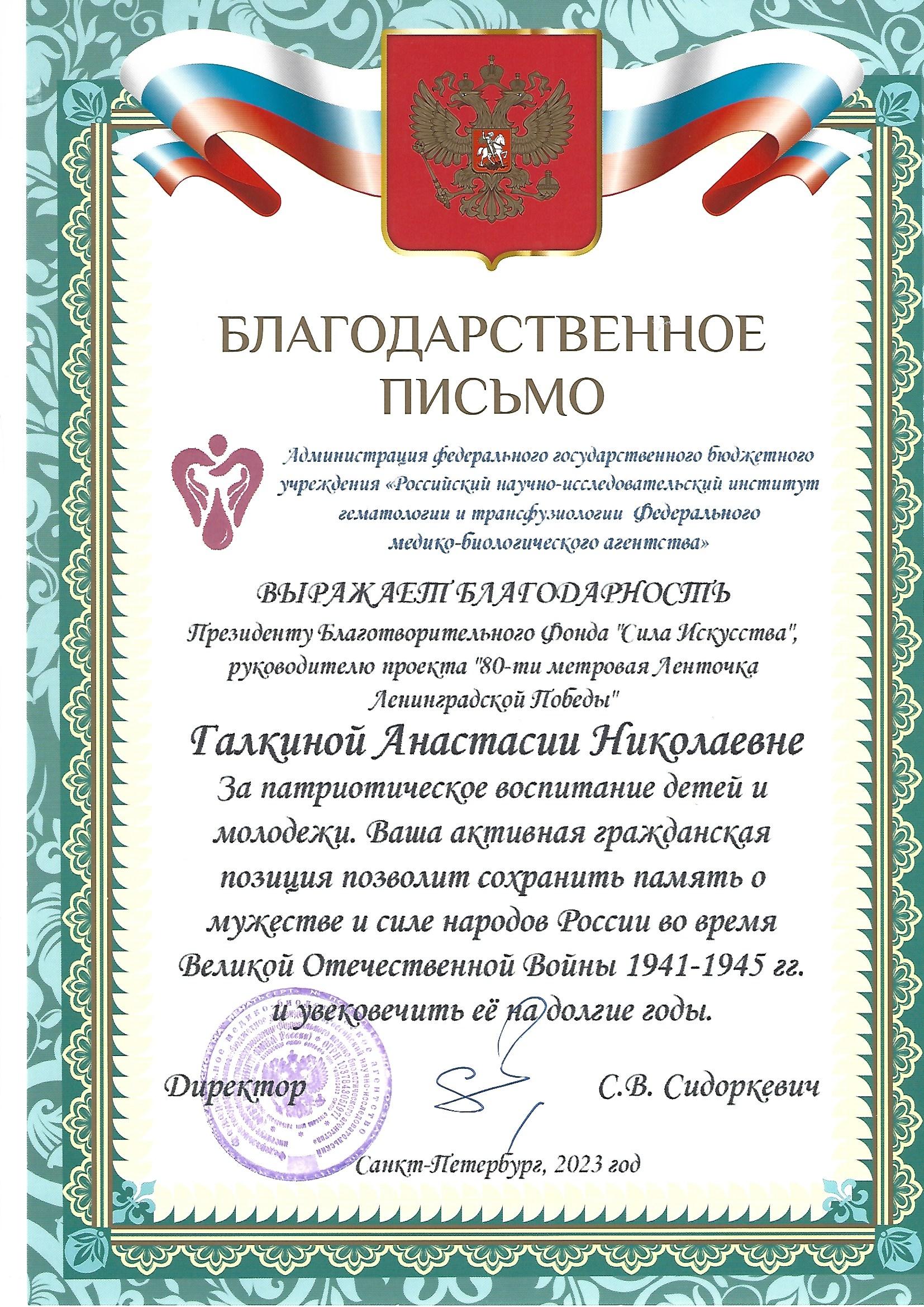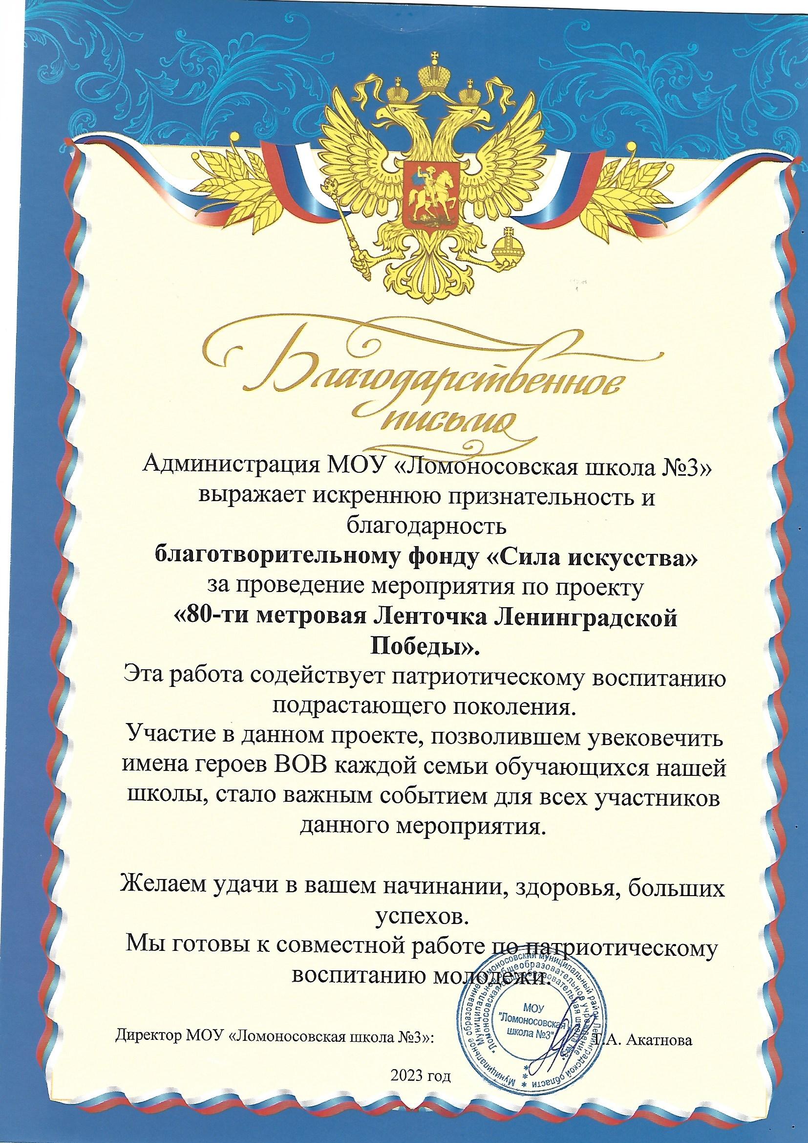 Мы получили огромный положительный отклик от детей и молодежи, огромную благодарность от ветеранов и блокадников, много писем и благодарностей от разных организаций, в которых провели мероприятия.