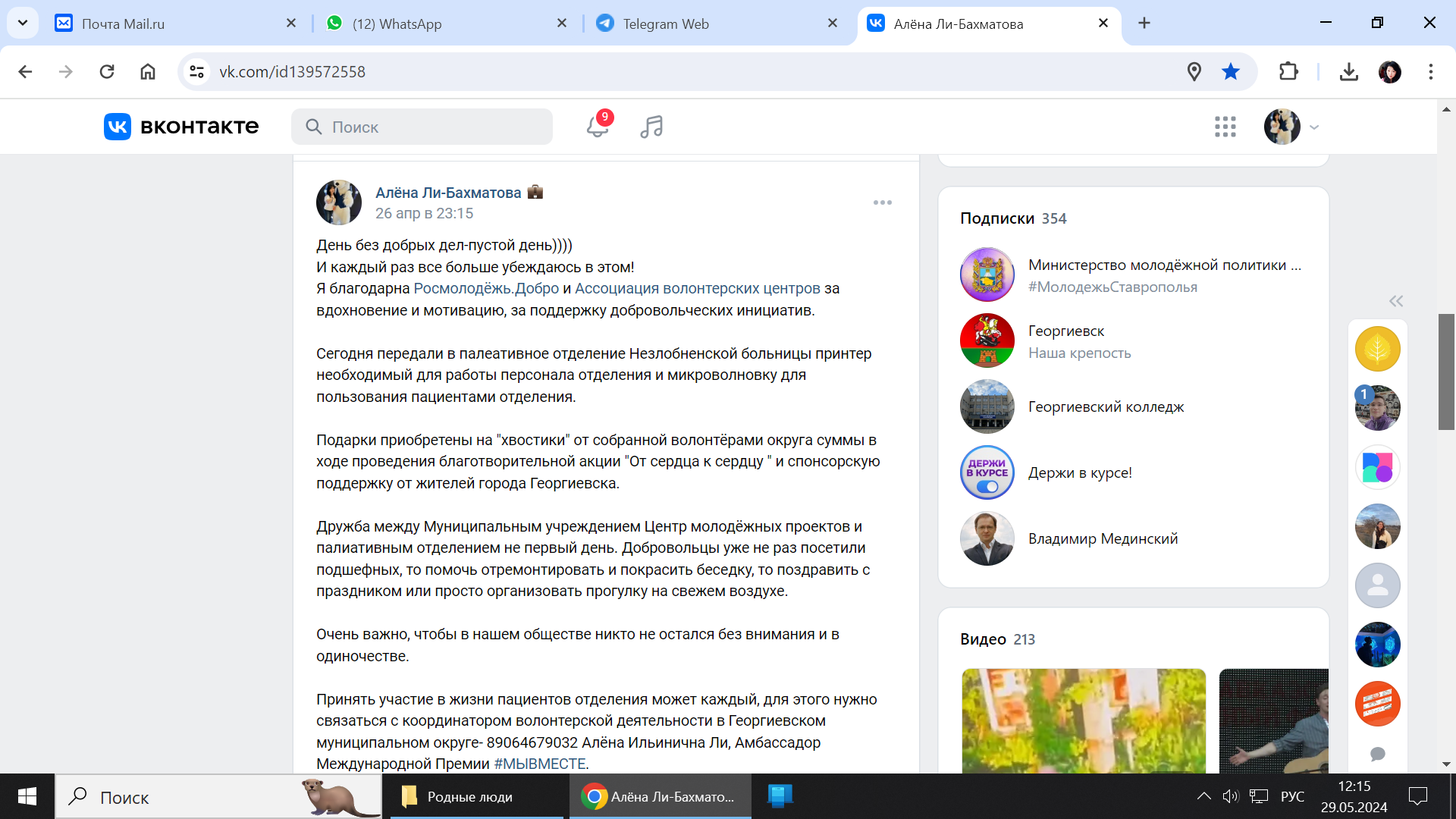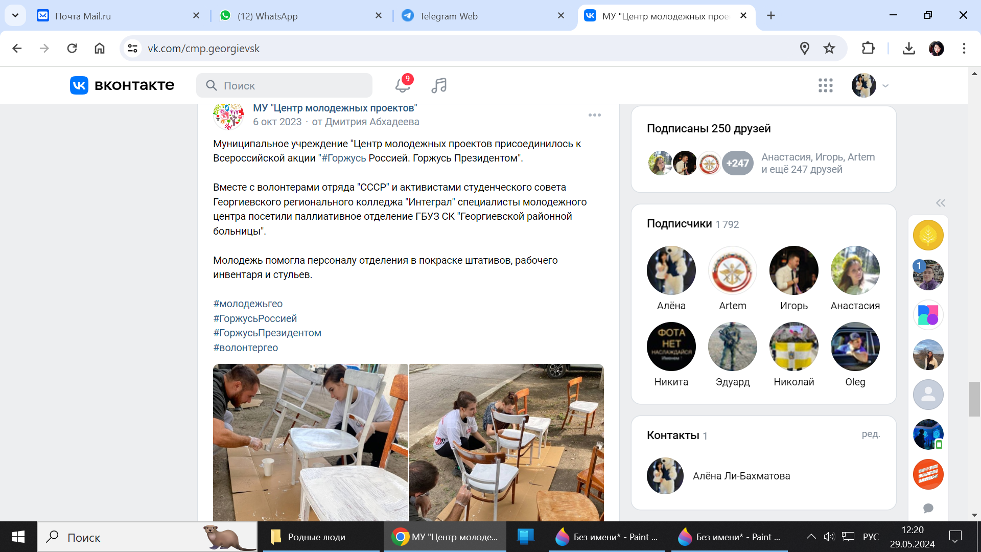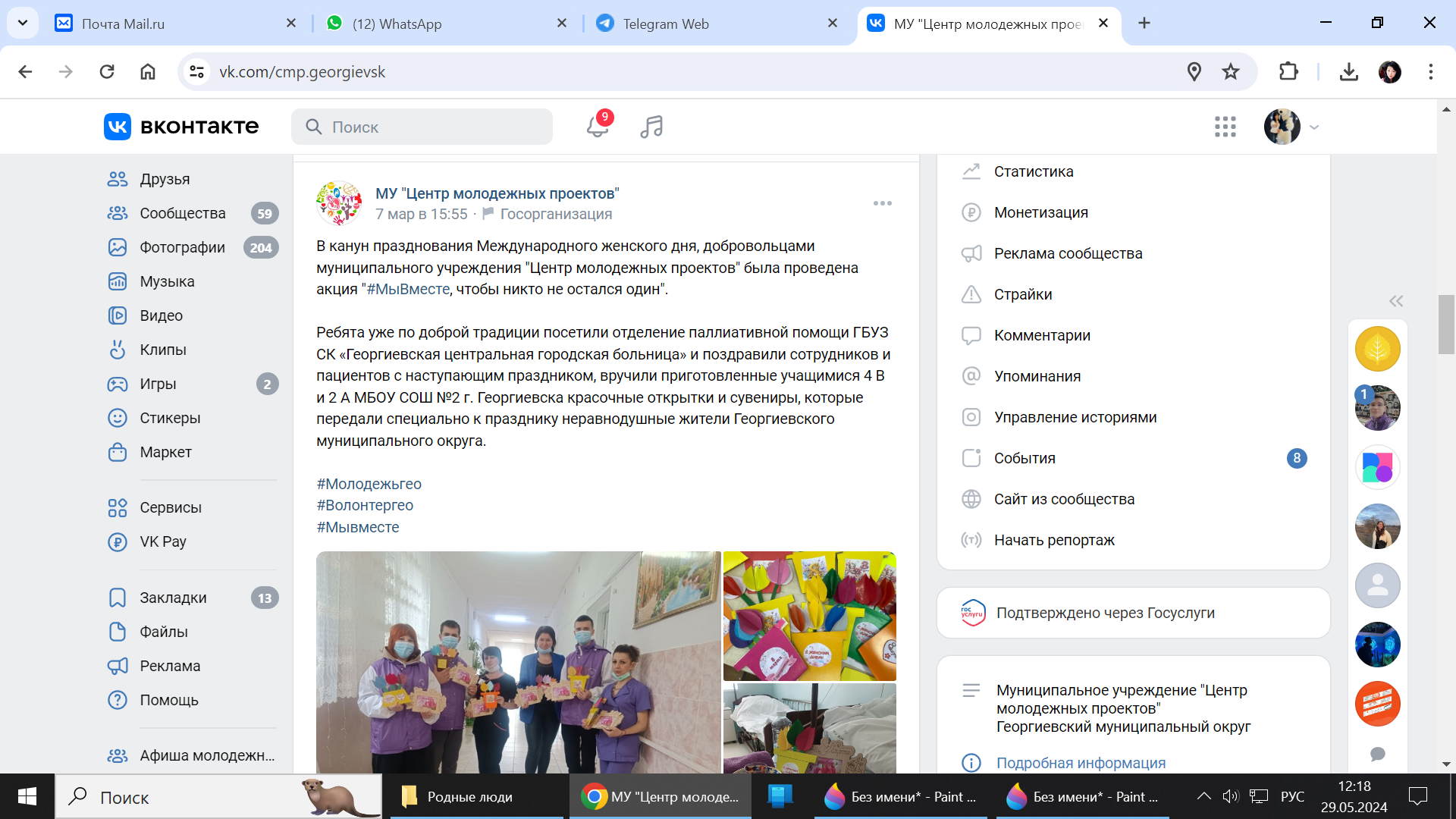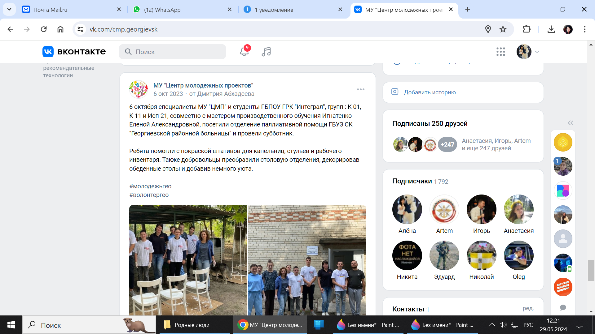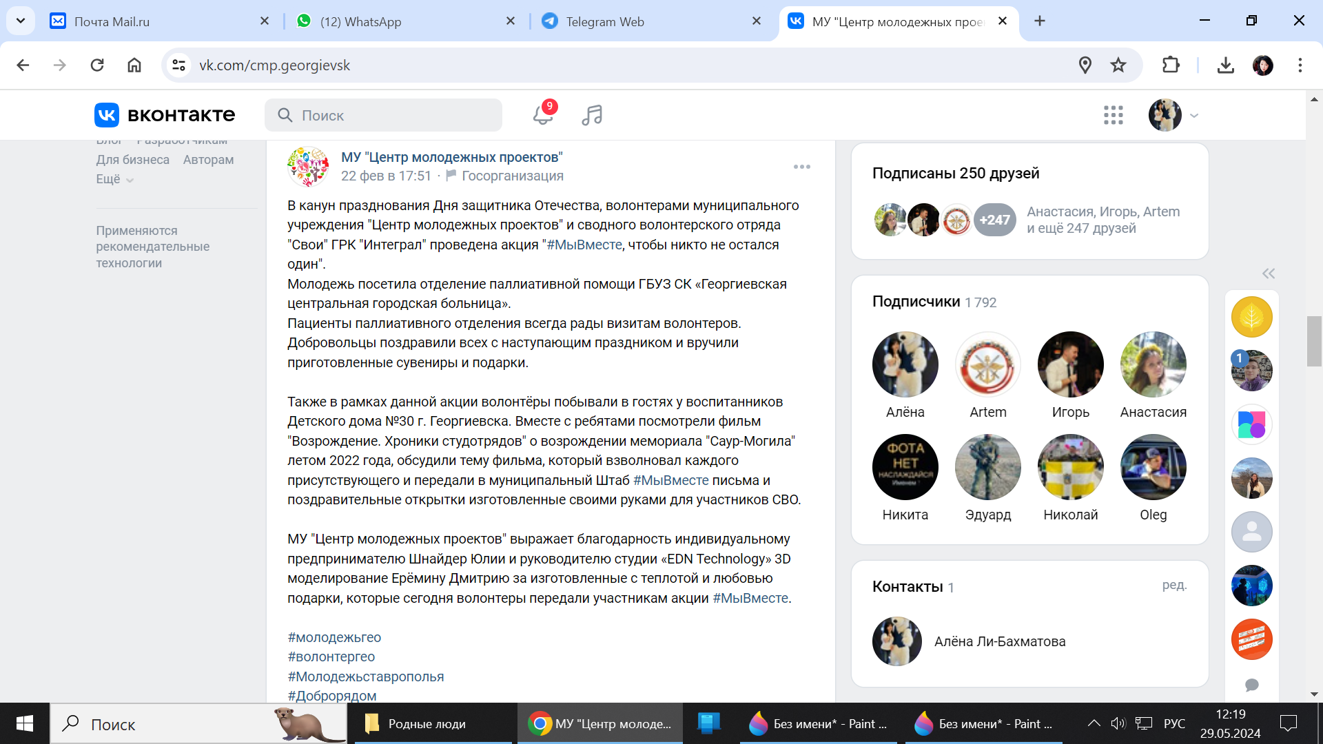 Как итог доверия добровольцам - заключение Соглашения о сотрудничестве 01 октября 2023 года между ГБУЗ СК "Георгиевская районная больница" и МУ "Центр молодёжных проектов".