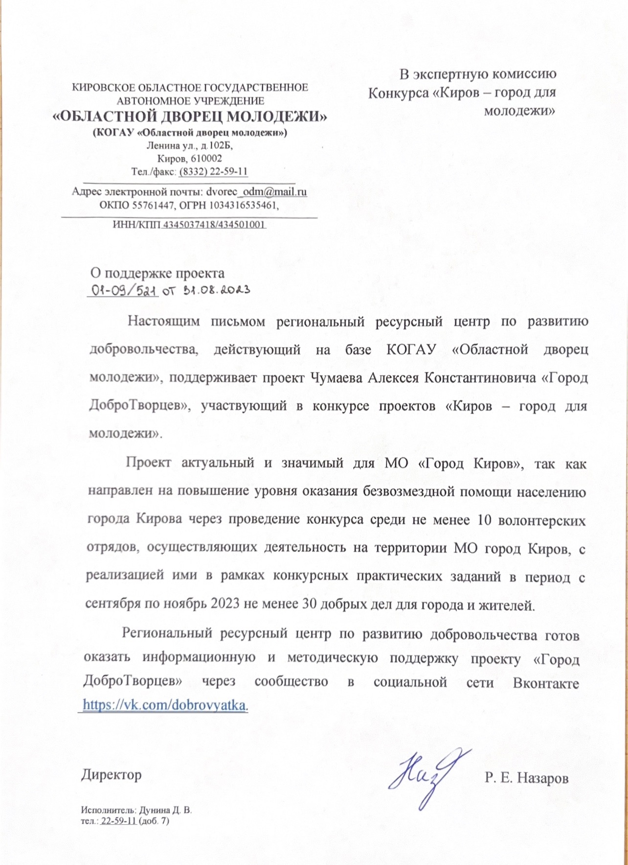 В 2023 году проект Город ДоброТворцев стал победителем грантового конкурса «Киров – город для молодёжи». В рамках проекта был проведен первый конкурс среди волонтерских отрядов города Кирова.