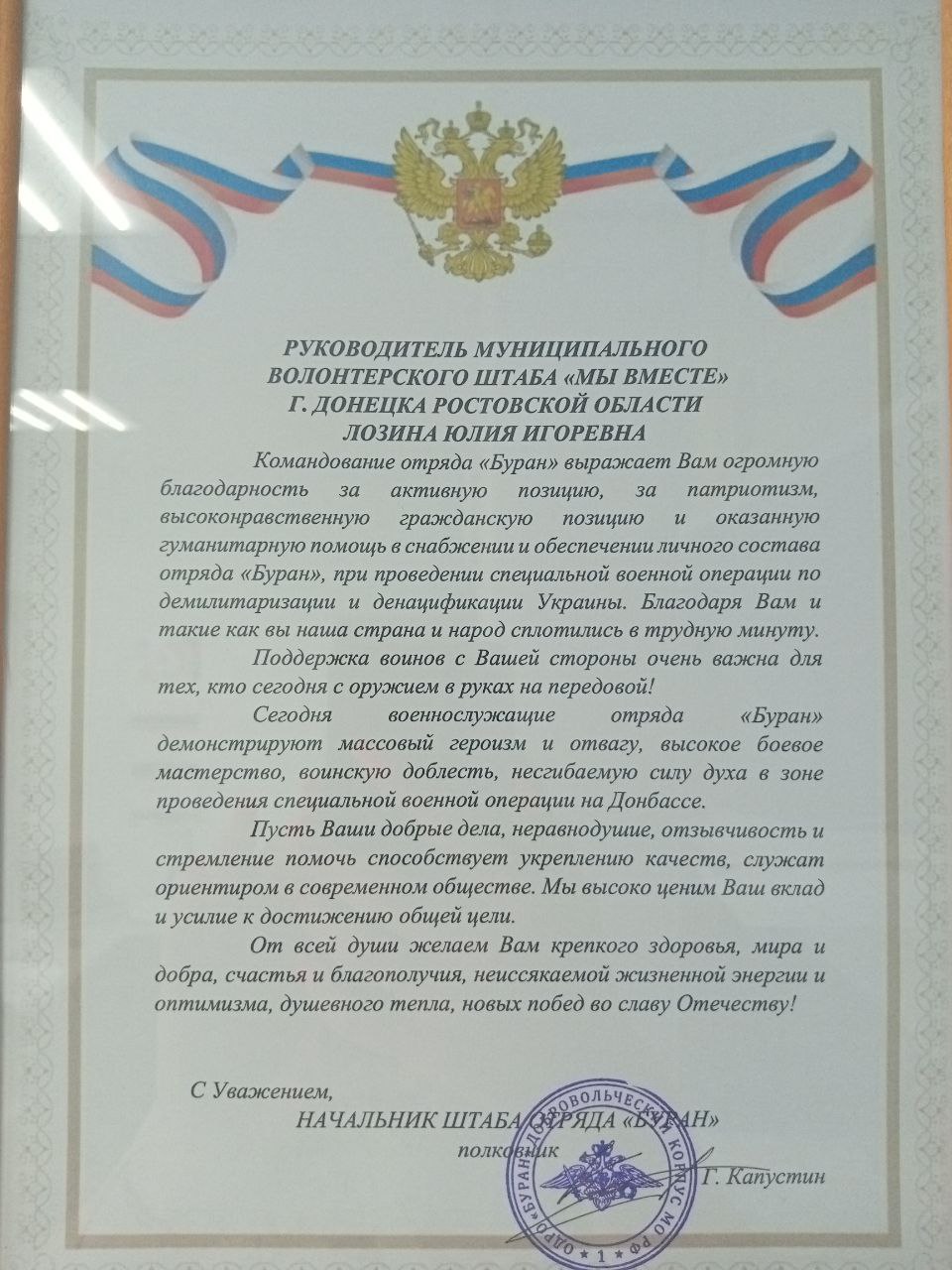Главный результат - слова благодарности по ту сторону ленточки, от сотрудников госпиталей. Когда вся наша помощь доходит до подразделения. Когда наполняются склады питевой водой, провиантом. Практически ежедневно мы видим не равнодушие граждан, а количество членов штаба с каждым разом становится больше.