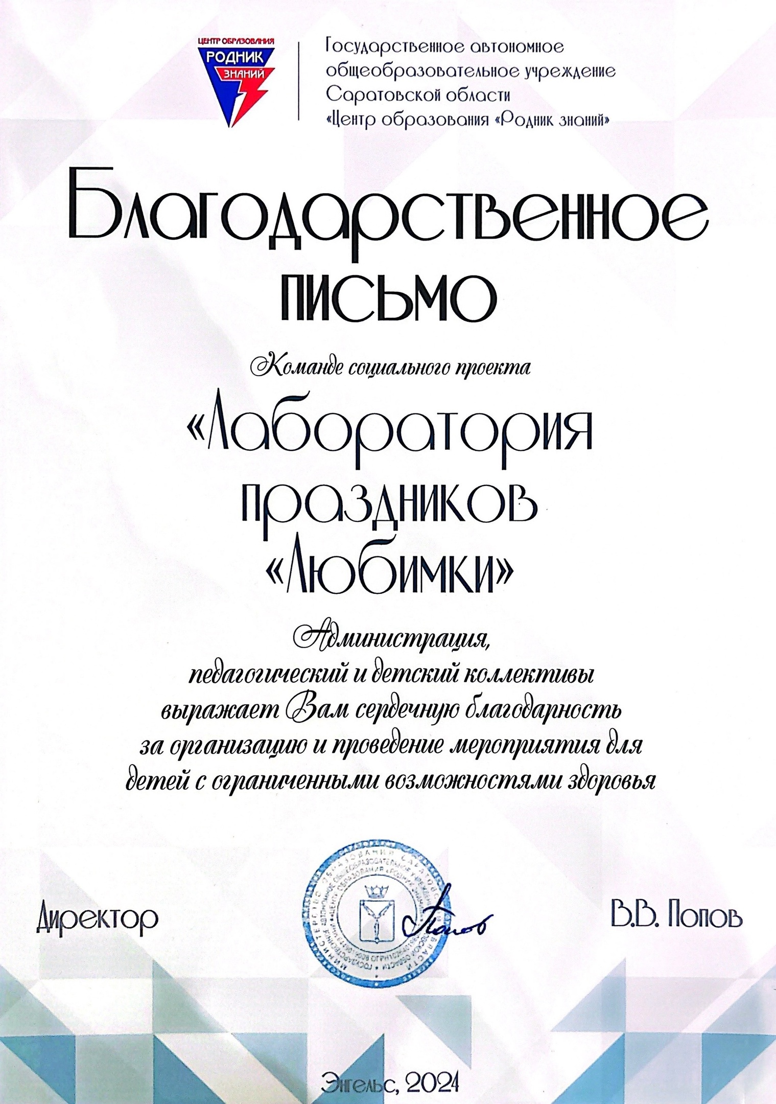 Кроме того, созданы авторские онлайн спецкурсы по аниматорству, в том числе с участием психолога. Данные спецкурсы размещены на YouTube и дополнительно распространены среди социальных учреждений Саратовской области.