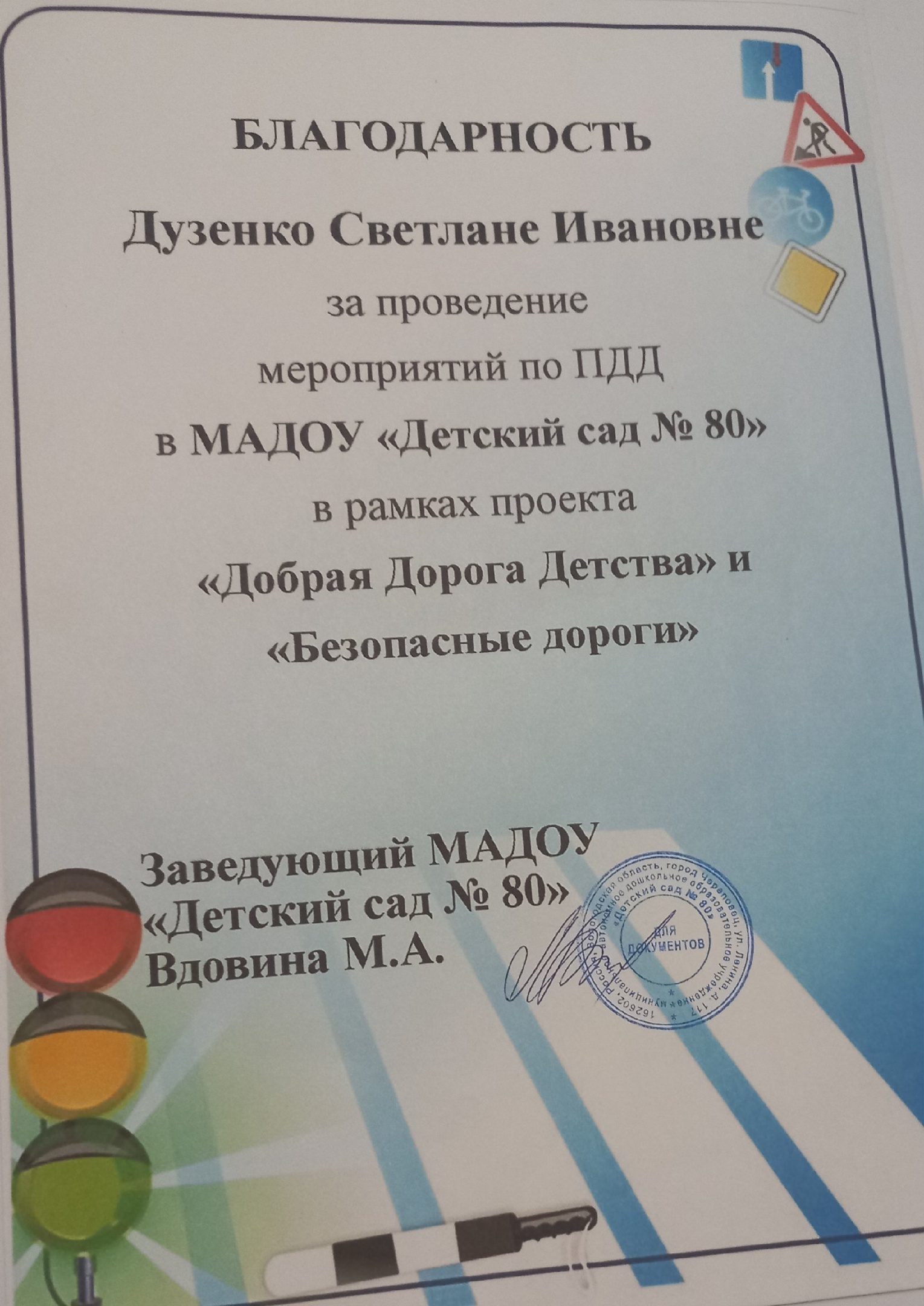 Благодаря целенаправленной проектной работе по профилактике детского дорожно-транспортного травматизма в городе Череповце проведено больше запланированных мероприятий, что показывает заинтересованность горожан и муниципалитета. В городе появилось большое количество заинтересованных организаций и общественников в сфере безопасности дорожного движения, что с уверенностью говорит о консолидации действий в создание Клуба безопасности дорожного движения, что в дальнейшем поможет избежать дорожно-транспортных происшествий, снизить количество случаев травматизма в результате дорожно-транспортных происшествий.