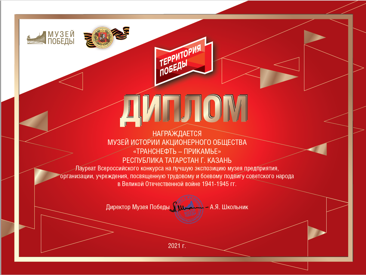 10. Экспозиция в музее предприятия и выставочном зале ДОЛ "Орленок" , посвященная ВОВ, стала победителем конкурса "Корпоративный музей" и конкурса Музея Победы "Лучшая экспозиция..."