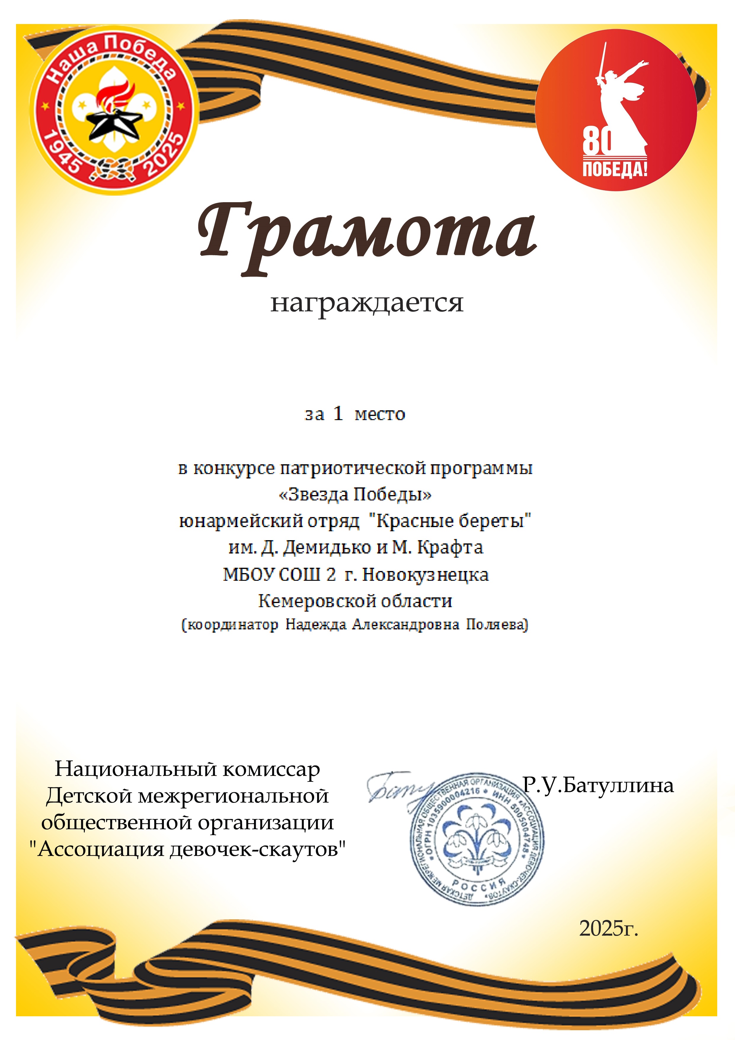 отряд им. св. благоверного князя Довмонта Псковского (Ростов-на-Дону) Юнармейский отряд «Красные береты» (Новокузнецк).
