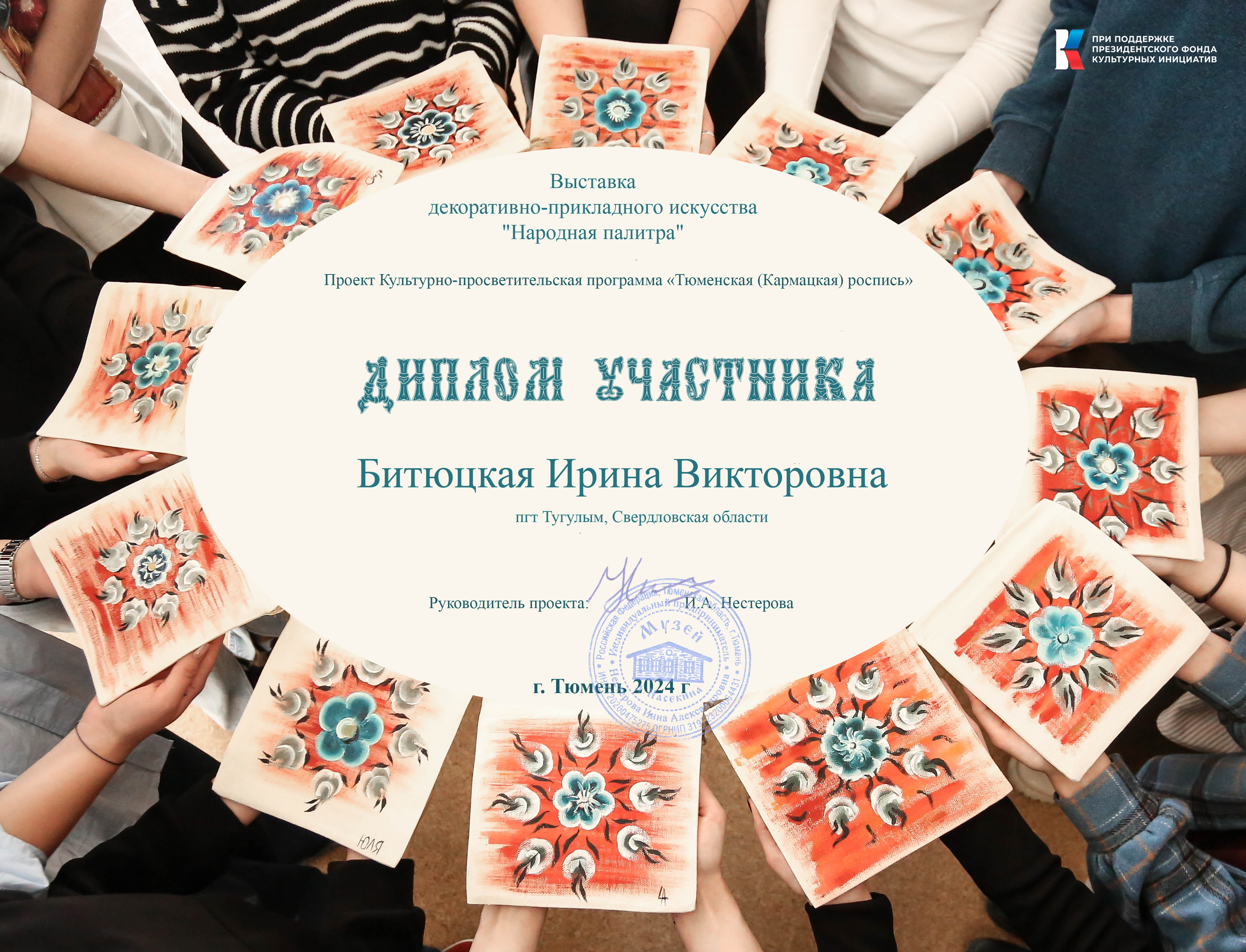 2. Участие в выставке-конкурсе декоративно-прикладного искусства «Народная палитра», г. Тюмень 10.05.2024г.
