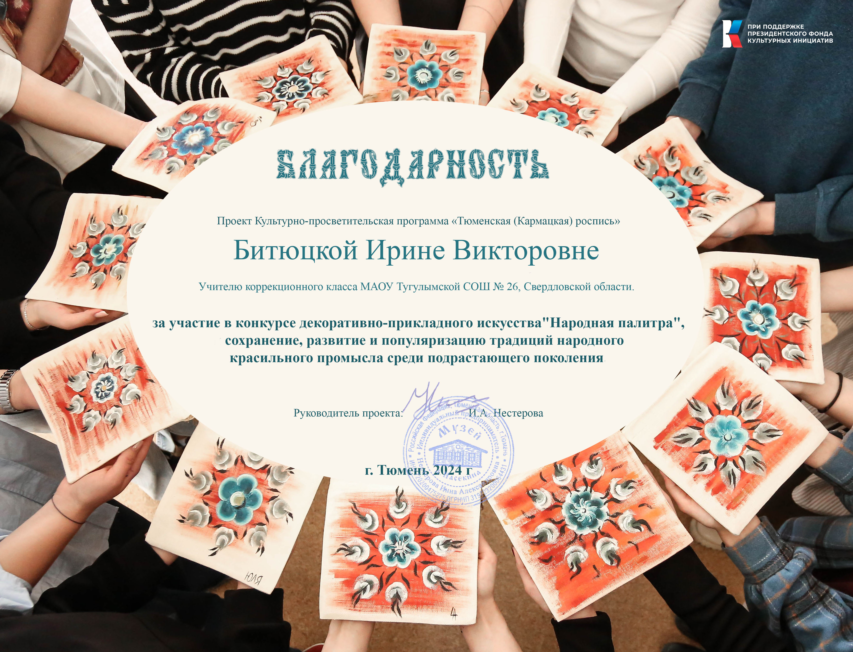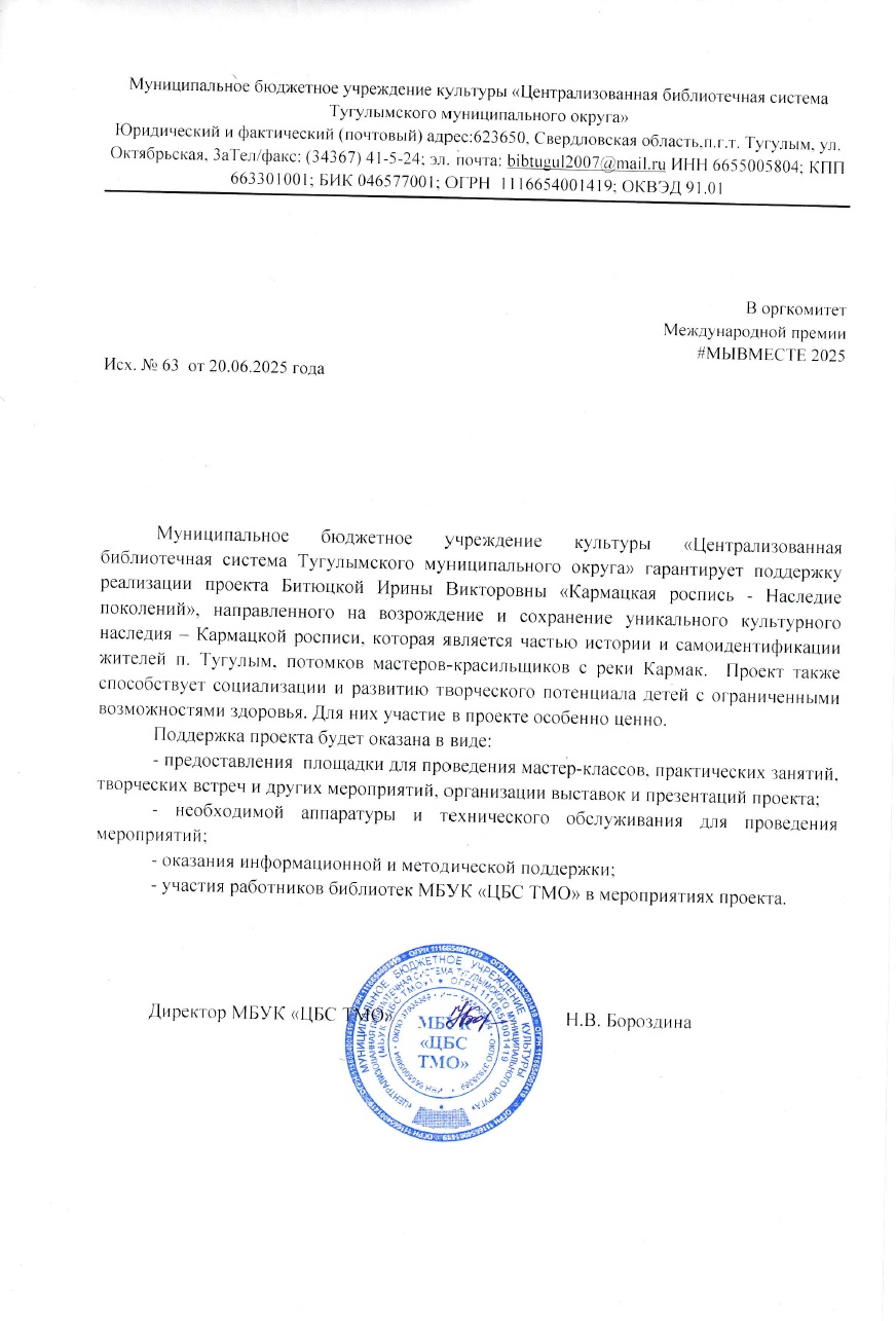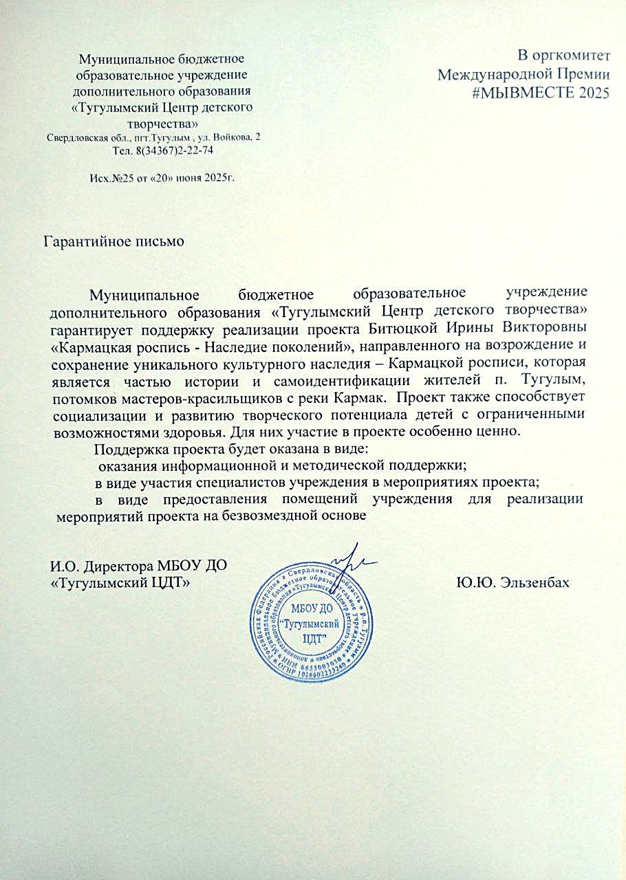 Проект посвящен сохранению и продвижению уникального искусства Кармакской росписи, которая является наследием мастеров-красильщиков прошлых поколений. Основателями этого промысла стали переселенцы с Русского Севера. Такой росписью особенно славились маляры шести деревень Тюменского округа, которые передавали мастерство из поколения в поколение на протяжении 200 лет. Мы - волонтерский отряд «Добрые руки», в состав которого входят дети с ограниченными возможностями здоровья - стремимся сохранить и передать техники и традиции этого ремесла, а также популяризировать его среди широкой аудитории. Мы, жители п. Тугулым, Свердловской области - являемся потомками мастеров-красильщиков, которые проживали на берегах реки Кармак в Тугулымском районе. Наша миссия – не только сохранить ремесло, но и сделать его доступным для всех. Мы проводим мастер-классы для детей и взрослых, рассказываем об истории Кармацкой росписи, учим создавать свои собственные уникальные изделия. Сотрудничаем с известными художниками и ремесленниками в этой области для создания новых произведений и продвижения этого культурного наследия. Мы мечтаем о создании полноценной мастерской, где каждый сможет прикоснуться к волшебству Кармакской росписи, где будут храниться секреты мастерства и передаваться из поколения в поколение. Мы верим, что с вашей поддержкой мы сможем сохранить это уникальное культурное наследие для будущих поколений. Федеральным законом об образовании в Российской Федерации, введен проект «Молодежь и дети», в который запланировано вовлечение в добровольческую и общественную деятельность не менее 45% молодых людей к 2030 году. Мы стремимся не просто привлечь молодежь к участию в мероприятиях, а научить самостоятельно организовывать и реализовывать собственные проекты, направленные на улучшение жизни в их родном, поселке. Благодаря участию в проекте, дети с ОВЗ обретают уверенность в своих возможностях и чувствуют уверенность в возможности самореализации, на своей малой Родине, в своей стране. Считаем наш проект мощным инструментом социальной адаптации и интеграции, который дает почувствовать свою причастность к богатой культурной истории родного края. В процессе обучения дети развивают мелкую моторику, координацию движений, усидчивость и внимательность, что особенно важно для детей с ОВЗ. Работа с красками и кистью стимулирует их творческое мышление, воображение и фантазию. Участие в выставках и ярмарках, где они представляют свои работы, дает им возможность почувствовать признание и уважение со стороны общества. Это укрепляет их уверенность в себе и стимулирует к дальнейшему творческому росту. Помогает им понять, что их возможности безграничны, и что они могут добиться успеха в любой сфере деятельности. Проект также направлен на самоопределение и профессиональную ориентацию. Мы верим, что искусство красильщиков может стать важным элементом сохранения культурного наследия нашего региона. Возрождая это ремесло,мы гордимся,что вносим вклад в развитие нашего поселка.