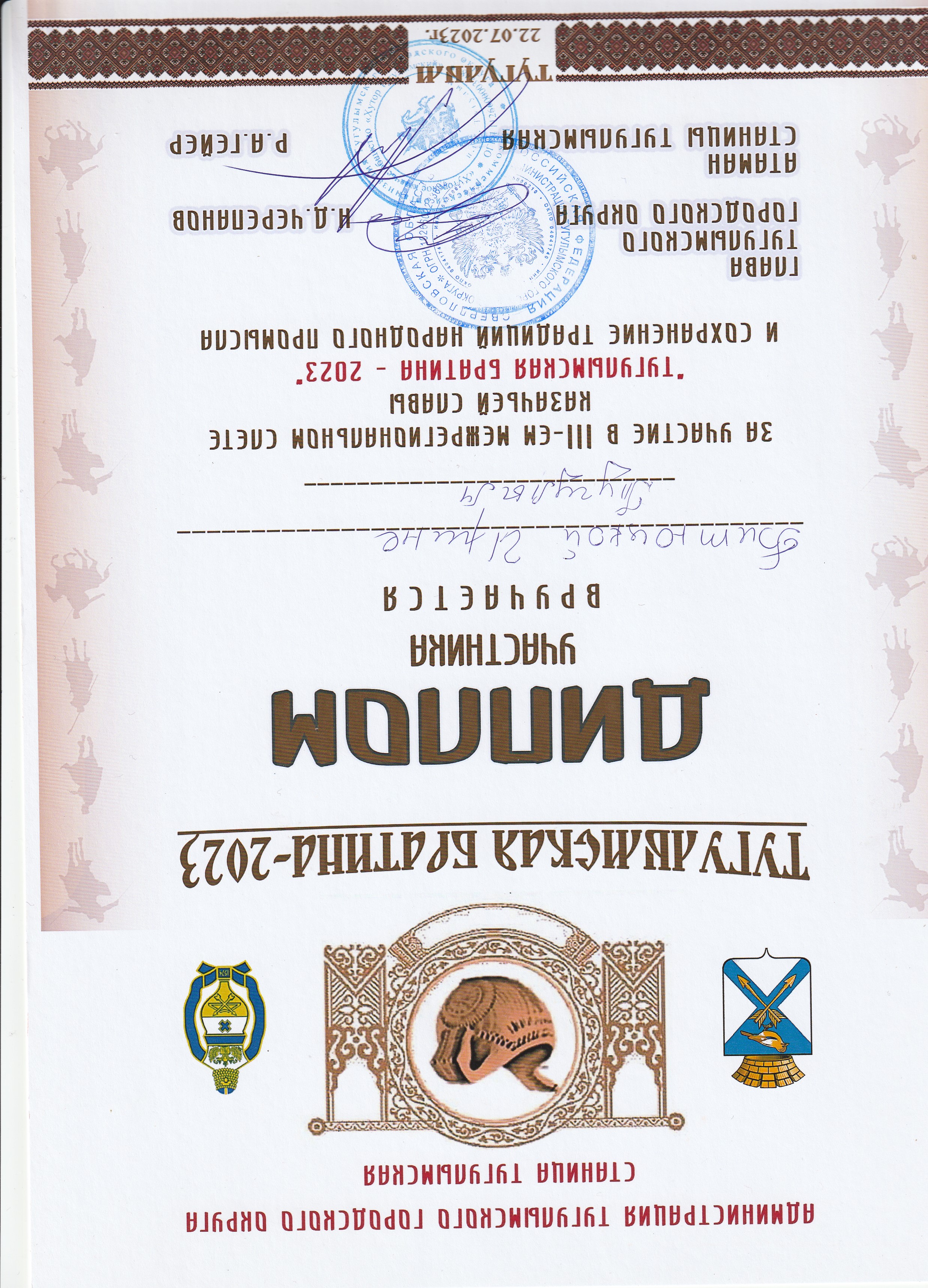 4. Участие в III межрегиональном слете казачьей славы «Тугулымская Братина - 2023» и сохранение традиций народного промысла 22.07.2023г.