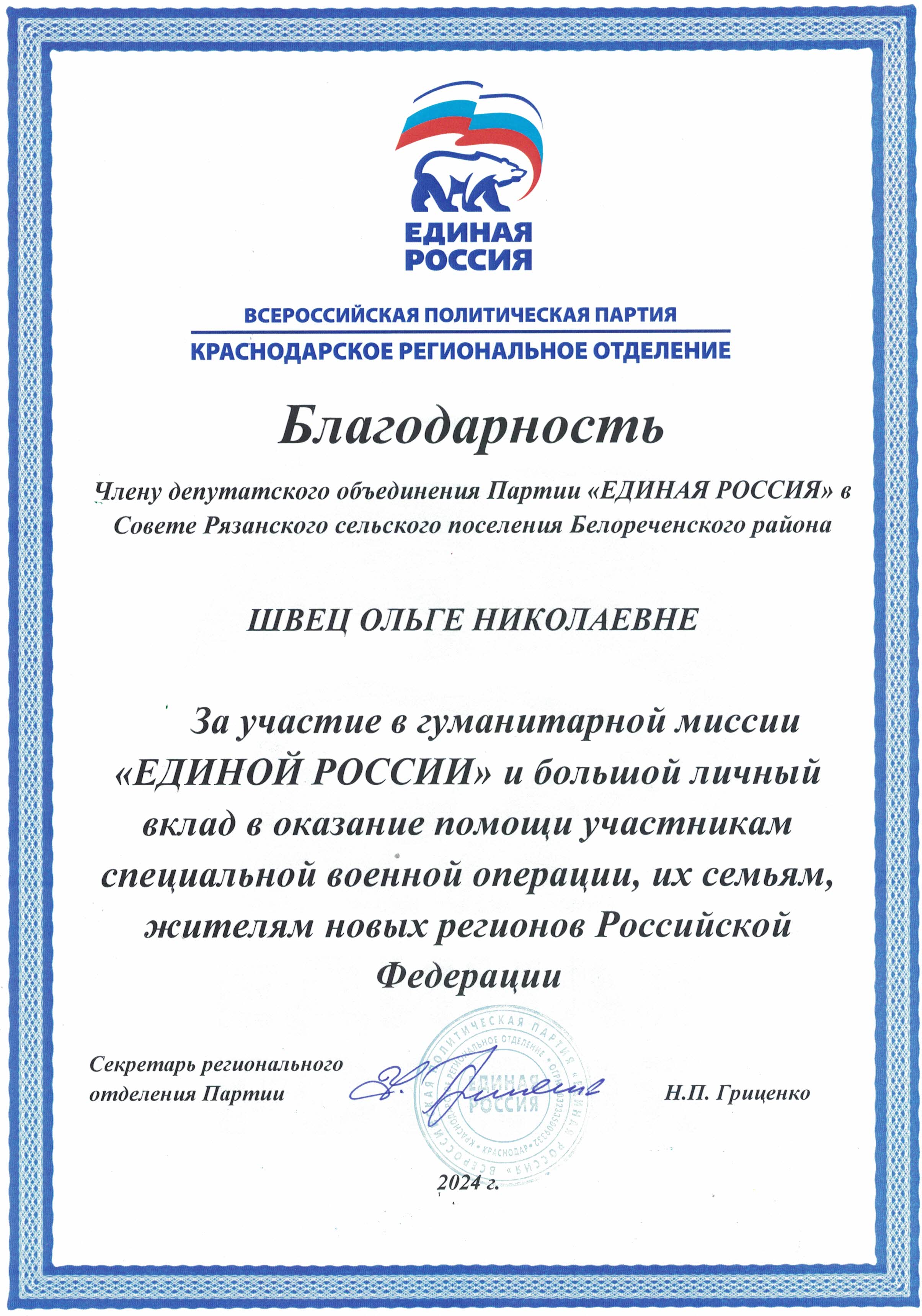 - организовано и проведено 16 захоронений погибших участников СВО Рязанского сельского поселения Белореченского района Краснодарского края