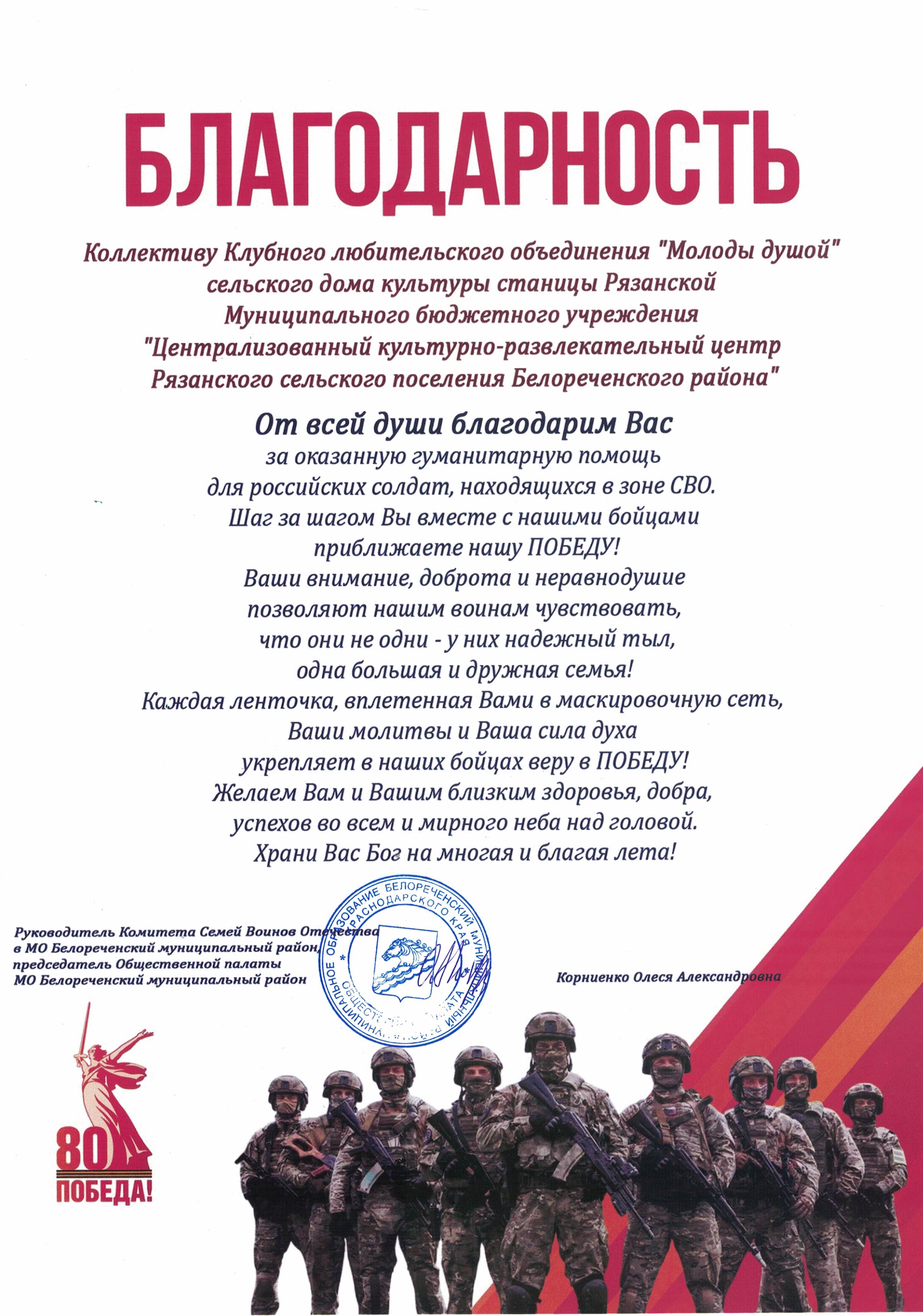 Инициатива продолжает развиваться и расширяться, привлекая все больше неравнодушных жителей Рязанского сельского поселения. Организаторы проекта открыты для новых идей и предложений, стремясь сделать помощь участникам СВО и их семьям максимально эффективной и адресной. Ведь только вместе, плечом к плечу, мы сможем преодолеть все трудности и построить сильную и процветающую Россию.
