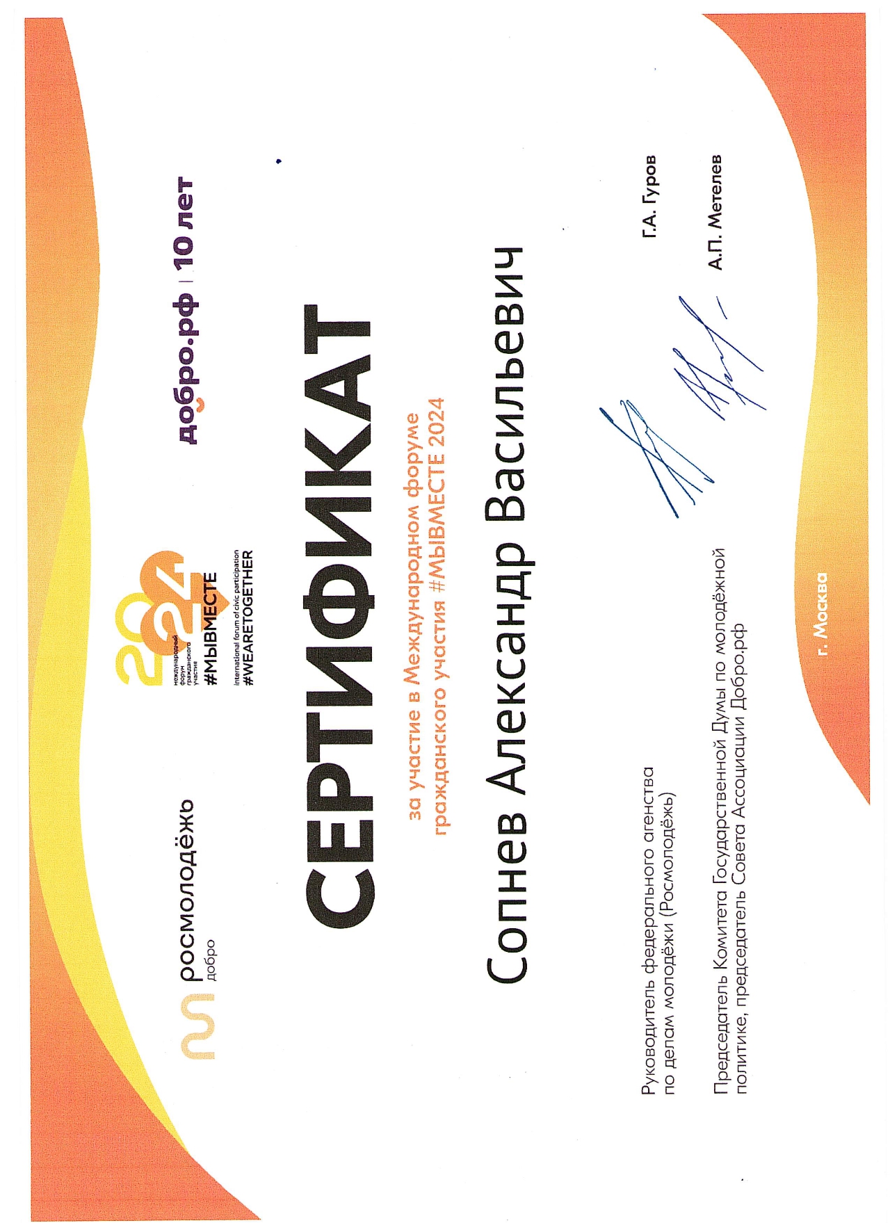 Проект «Обучение добровольцев (волонтеров) поиску пропавших людей» вошел в 1000 ТОП лучших проектов Международной Премии #МЫВМЕСТЕ – 2024 г.