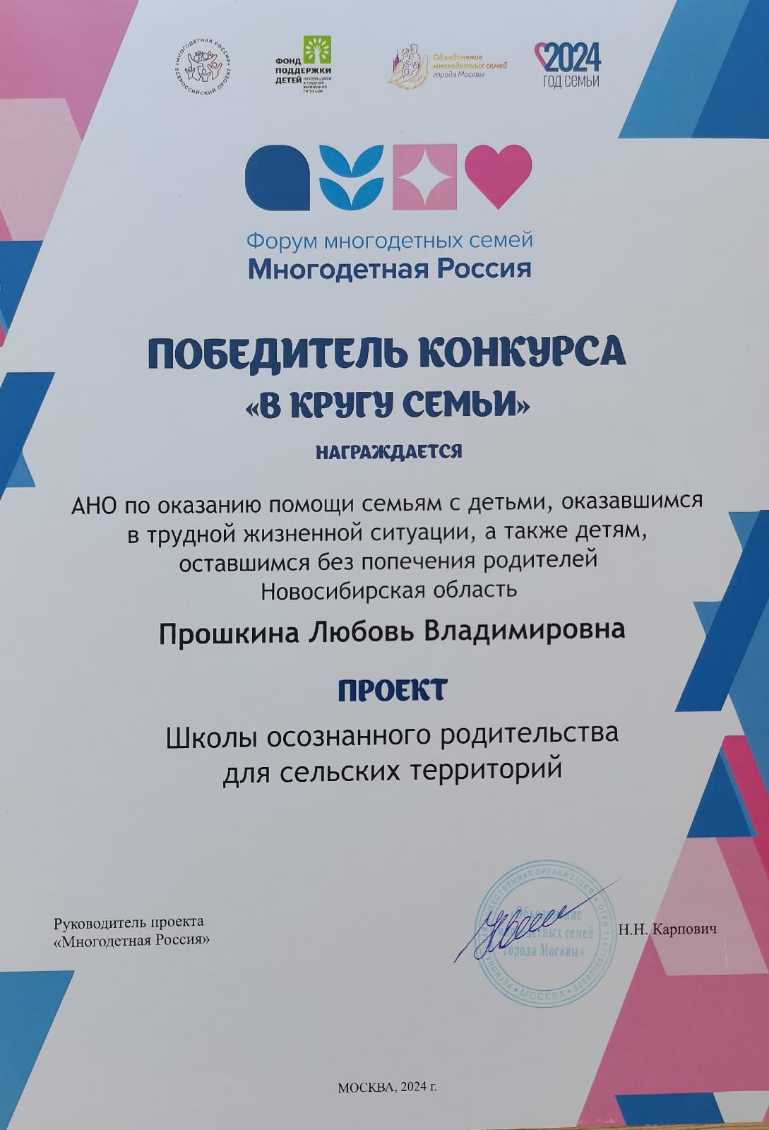 В рамках заключенного в 2022 г. соглашения с разработчиком АНО ПП «Азбука семьи», на территории Новосибирской области реализовано 23 Школы, где родители, ранее имели проблемы в воспитании своих детей и выстраивании внутрисемейных отношений, в результате прохождения программы "Азбука счастливой семьи" улучшили отношения с супругами и детьми, что оказало прямое влияние на благополучие семей. Несмотря на все положительные изменения в семьях путем работы с родителями, важно было выстроить работу и с подростками. Родители-участники проекта, ожидали программу для подростков, которая прошла апробацию в 2023-2024 гг. и в конце 2024 года была издана книга-тренажер. На данный момент на территории сельской местности Новосибирской области помимо Школ для родителей реализуется 2 Школы для подростков, где ребята готовятся к будущей семейной жизни, получают помощь в улучшении отношений с родителями и другими членами семьи, психоэмоционального состояния. Подростки получают помощь в понимании особенностей своего возраста и принятии себя, получают ответы на вопросы: как справляться с трудностями, как общаться, чтобы их слышали, как не бояться будущего и подготовиться к взрослой жизни.