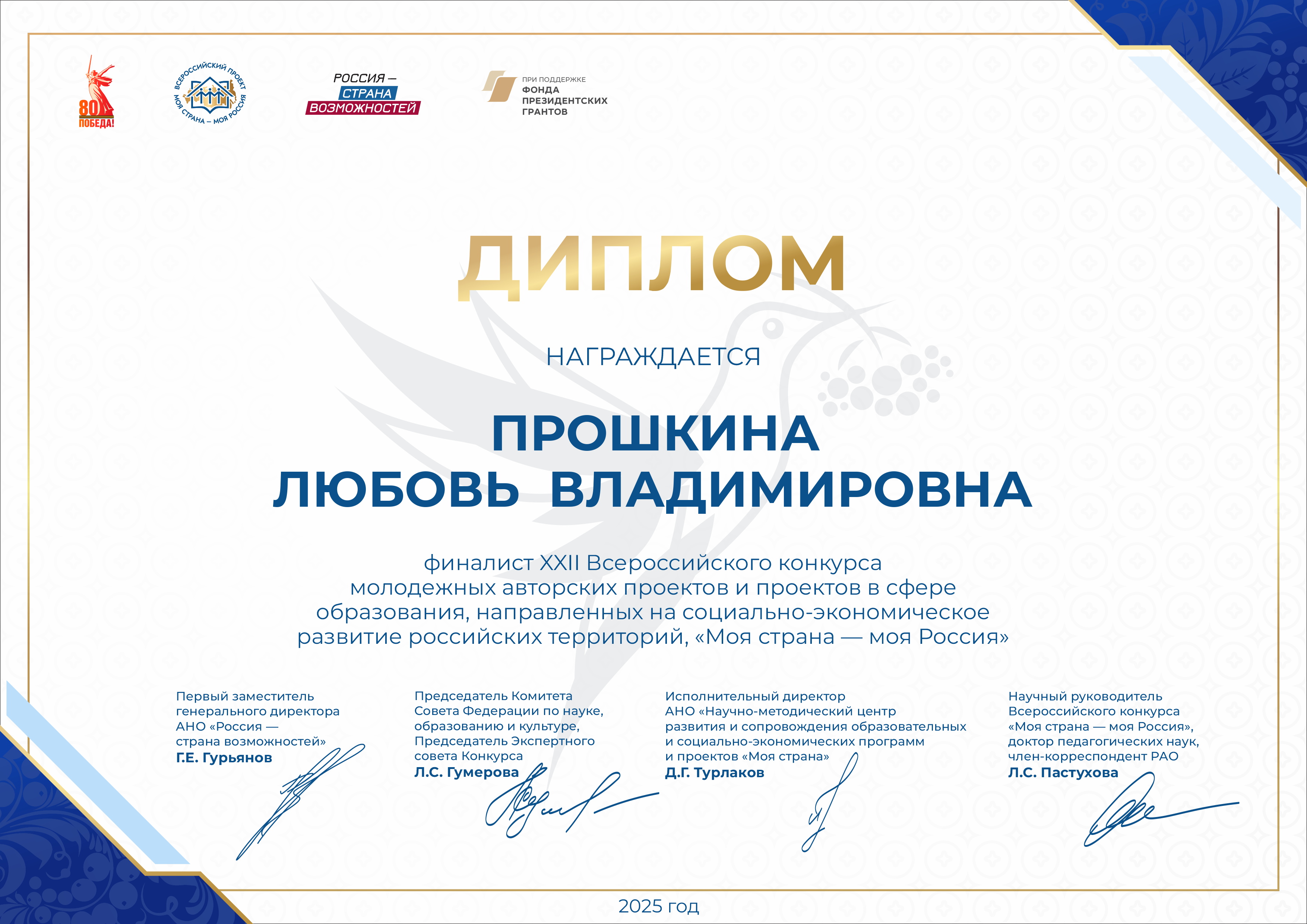 - проект вышел в финал Всероссийский конкурсов «Моя страна - моя Россия», «В кругу семьи», в полуфинал Премии МЫВМЕСТЕ 2023 года.