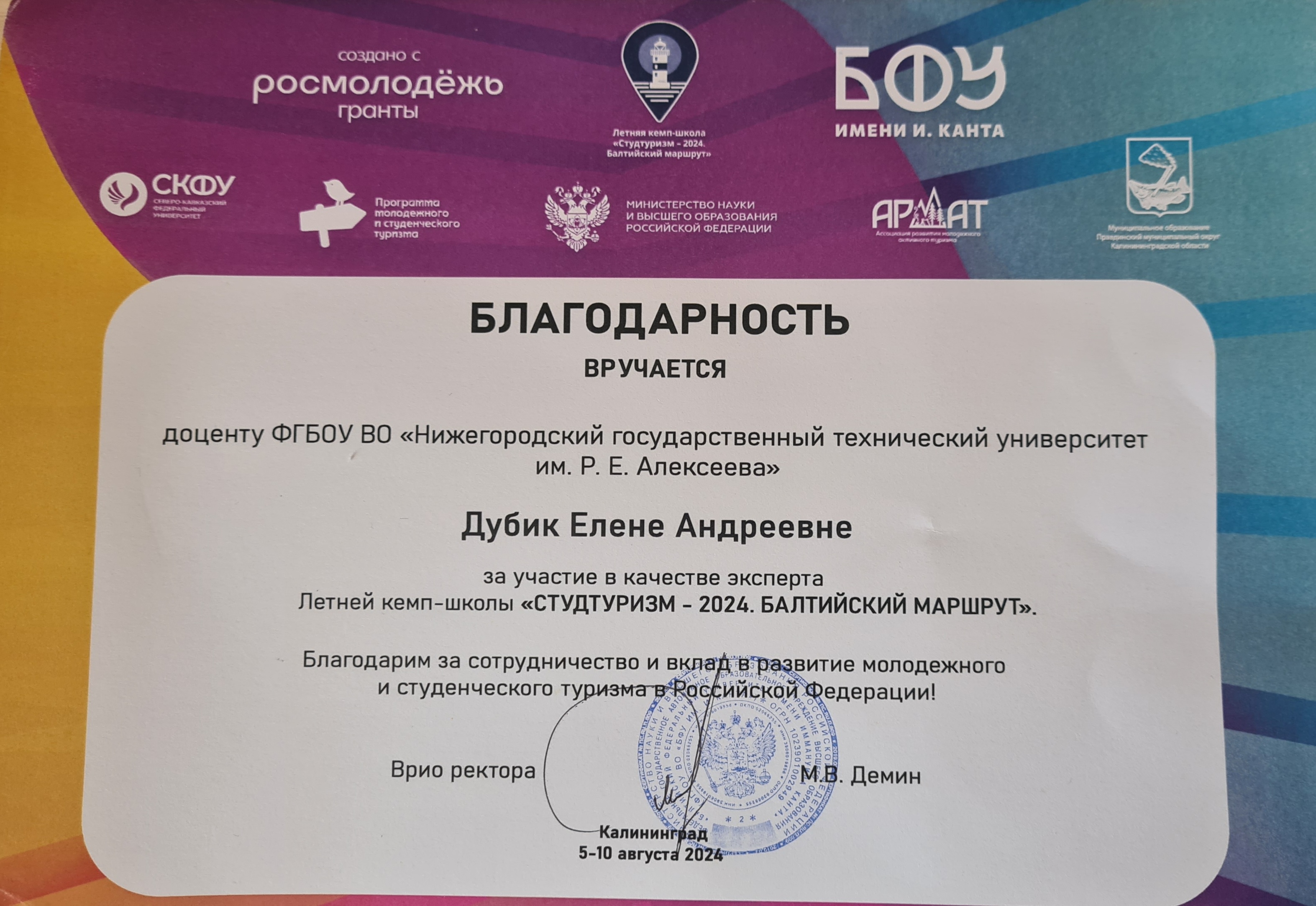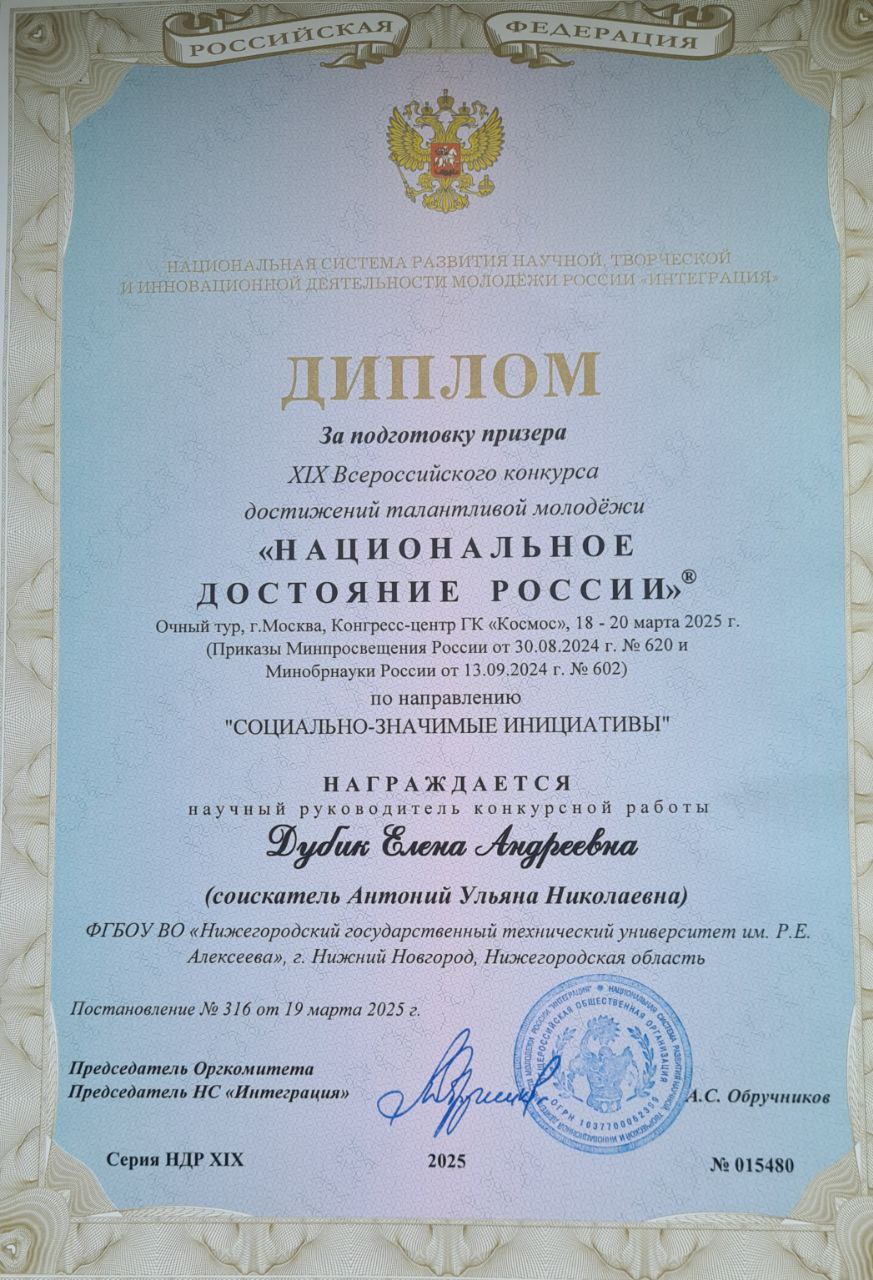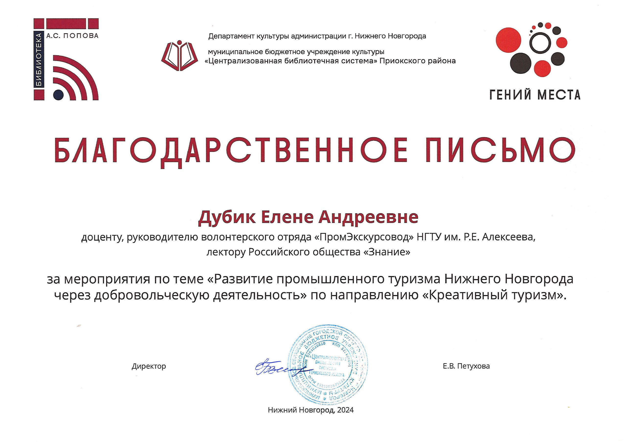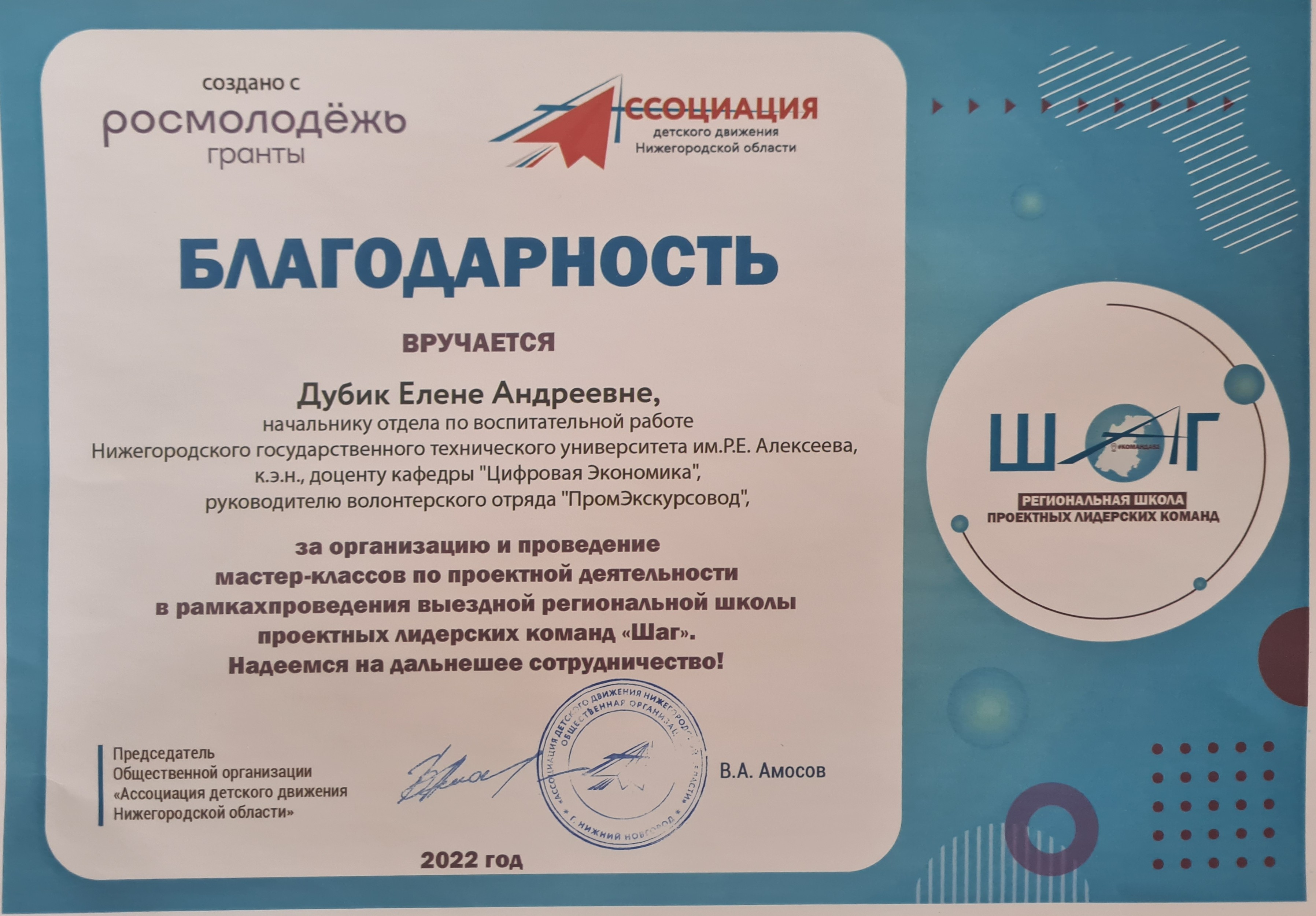 7. Разработано и выпущено научное учебное пособие "Проектная деятельность в добровольческом промышленном туризме на территории России (на примере Нижегородской области): учеб. пособие / Е.А. Дубик [и др.]; НГТУ им. Р.Е. Алексеева, 2022. – 85 с." - 100 шт. и доступно в Интернет пространстве.