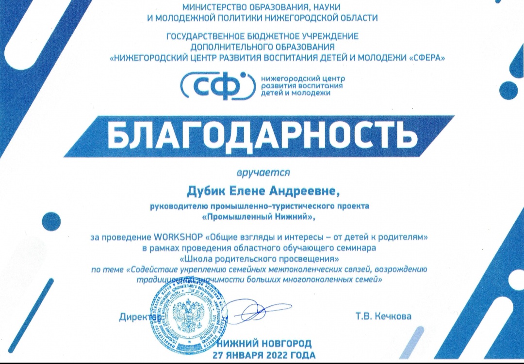 • музеи и производство промышленных предприятий г. Нижнего Новгорода и Нижегородской области. Например, «НИТЕЛ» (Нижегородский телевизионный завод им. В.И. Ленина); Горьковский автобусный завод; производство картонной упаковки «ПРОМИС»; авиастроительный завод «Сокол»; завод «Красное Сормово» (подводные лодки, судна на подводных крыльях, буксиры, танкеры, паровозы, танки, суда); Нижегородский химико-фармацевтический завод; Завод им. Г.И. Петровского: изготовление бортовых и наземных специальных магнитофонов регистрации речевой информации и параметров работы оборудования; Красный Якорь; «Теплообменник»: системы регулирования давления, кондиционирования, охлаждения, холодильники, компрессоры и др.