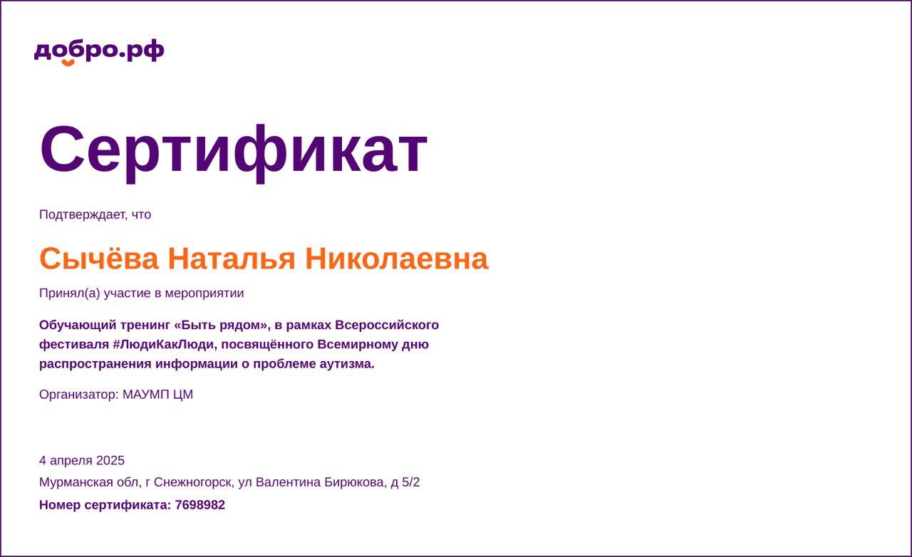 2. Благодаря активной просветительской и наставнической деятельности проекта, более 40 специалистов смогли расширить свои представления о нейропсихологии, повысили свои профессиональные компетенции в части взаимодействия и коррекционной работы с детьми с ОВЗ. Многие из участников проведенных семинаров выразили желание к тесному сотрудничеству в качестве помогающих и коррекционных специалистов при проведении мероприятий проекта (на безвозмездной основе). Помимо просветительской деятельности, в рамках проекта был организован Региональный Конкурсный отбор лучших коррекционных и здоровьесберегающих практик по работе с детьми-инвалидами. Целью Конкурса стало совершенствование и развитие системы межведомственного взаимодействия в части комплексного сопровождения детей с ОВЗ на территории ЗАТО Александровск, ЗАТО п. Видяево и ЗАТО Заозерск.