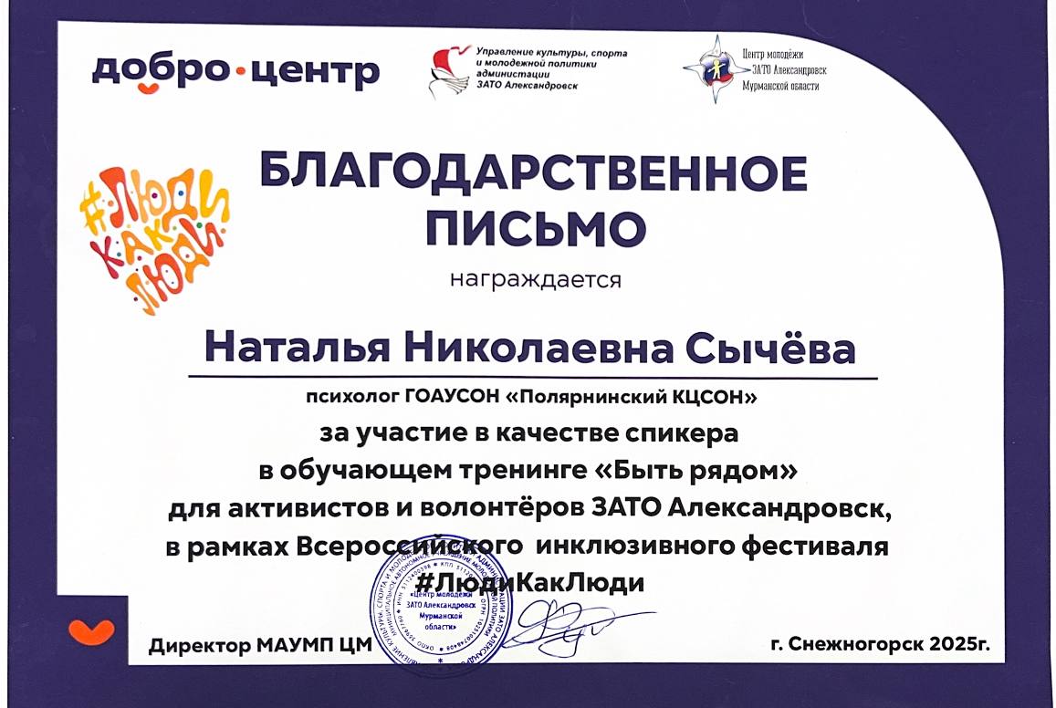 С января 2025 года проект успешно реализуется на базе ГОАУСОН "Полярнинский КЦСОН".