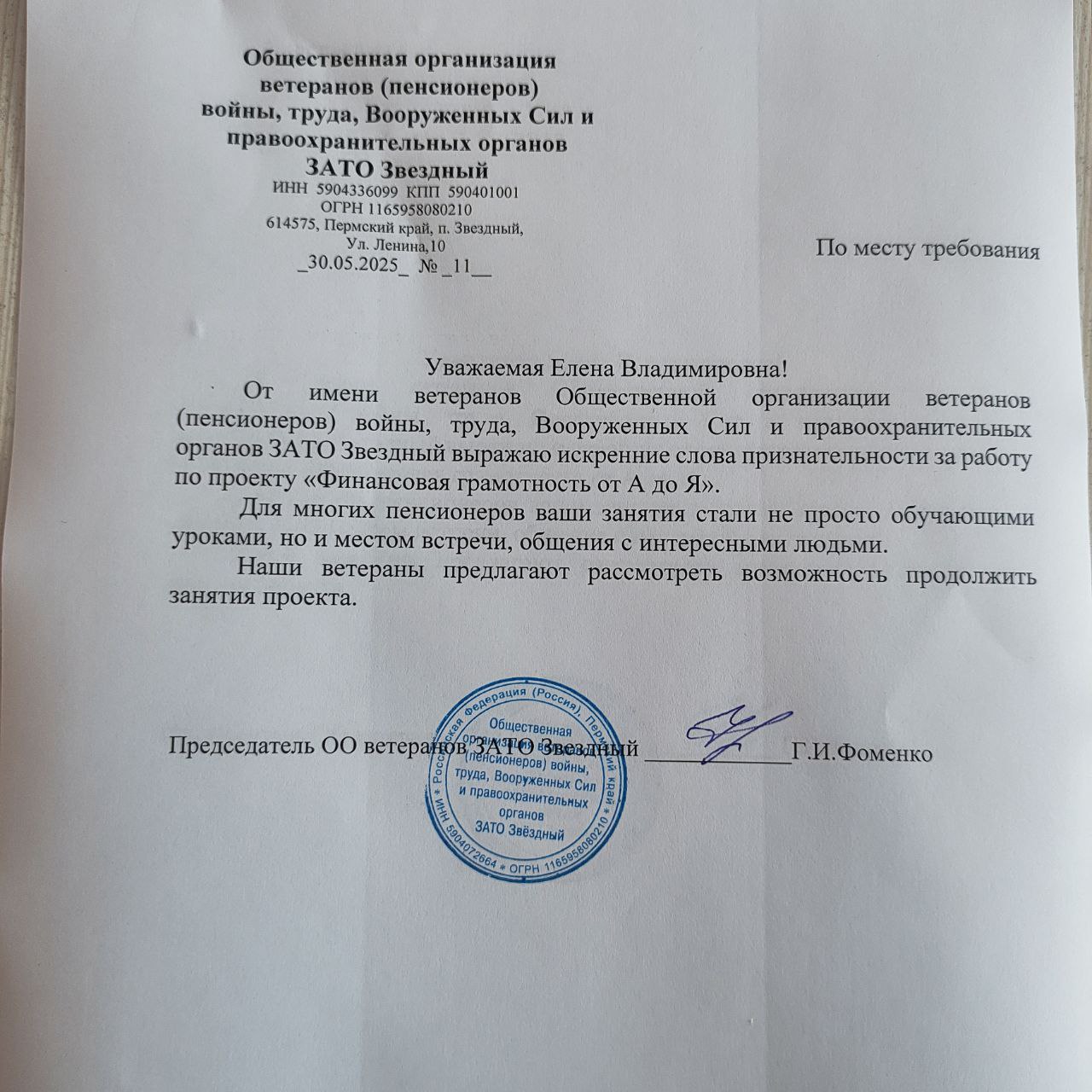 Сегодня, очень часто мы слышим и видим, как мошеннические схемы, направленные на пожилых людей, наносят им не только материальный вред, но и оставляют глубокую психологическую травму. Отрицательный опыт покупок в интернете, отсутствие базовых знаний приводят к недоверию к финансовым институтам. Для малых городов, таких как ЗАТО Звёздный наблюдается низкий уровень финансовой грамотности у пожилых людей 60-75 лет. Проведенное в ЗАТО Звёздный анкетирование показало, что 72% опрошенных граждан старше 60 лет знают о портале «Госуслуги», мобильных банках, но не пользуются ими, в силу страхов и недоверия. Не умеют пользоваться электронными банковскими сервисами, не знают, как найти необходимую информацию в интернет пространстве, боятся совершать покупки через интернет, в целом не подготовлены к рациональному финансовому поведению, которое является залогом финансовой независимости и благополучия. Актуальность финансовой грамотности населения, особенно пенсионеров только возрастает. Проект направлен на повышение уровня финансовой грамотности среди пенсионеров, преодоление «цифровых» страхов, создаст условия для обеспечения достойного уровня и качества финансовой грамотности среди пенсионеров.