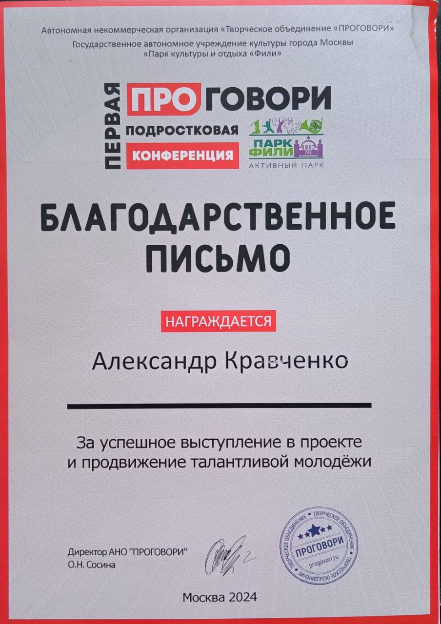Победитель Национальной премии Детского патриотического творчества в номинации "Современные технологии в творчестве"
