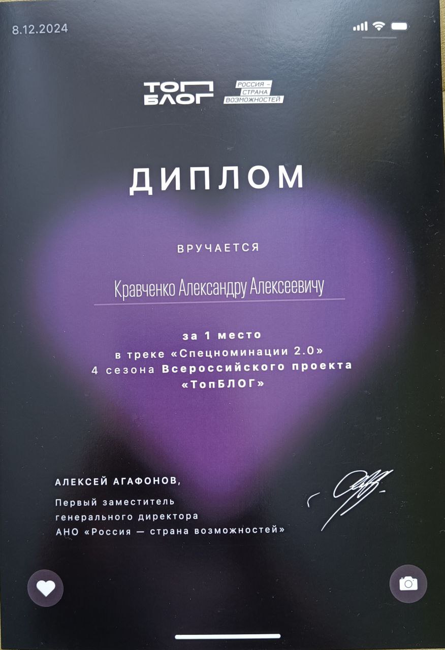 Победитель 1 степени на Всероссийском конкурсе "ТопБЛОГ" в номинации "Современные технологии"
