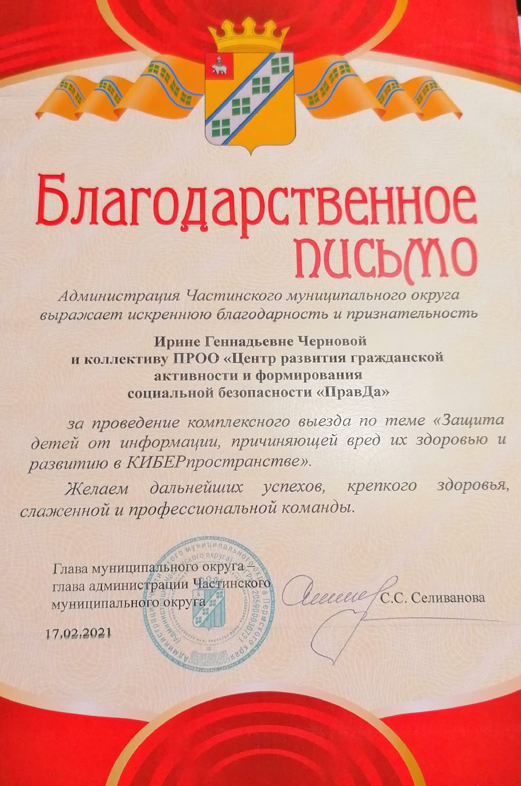 Мы создали команду профессионалов в сфере детства, которые неравнодушны к безопасности наших детей в сети Интернет. Мы как родители увидели в 2016 году как наши дети легко попадают в руки преступников в Интернете и легко начинаются выполнять задания различных деструктивных игры в сети (в 2016 году у нас в регионе активно вела себя игра "Синий кит"). Мы совместно с полицией и следственным комитетом стали искать как обезопасить наших детей. Сначала выявляли в соц сетях по опасным хештегам тех детей, которые включились в игру и старались их вытащить, а потом объединили вокруг себя специалистов из территорий Пермского края и провели первое обучение. Эти специалисты стали нашими КИБЕРконсультантами (они профессиональные волонтеры), а мы создали на уровне края экспертную команду, которая поддерживает деятельность всей команды КИБЕРконсультантов КИБЕРдружины Пермского края. Прошло 9 лет и всё это время мы ежегодно принимаем через единое окно, официальные устные и письменные запросы более 1,5 обращений от жителей Пермского края, проводим более 1000 событий с участием более 30000 детей и взрослых, проживающих в регионе. Мы создали свою верифицированную библиотеку материалов по теме детской КИБЕРбезопасности, в которой сейчас 328 материалов. За последние 2 года мы отправили в уполномоченные органы власти (РКН, МВД, ФСБ) 424 сообщения с выявленными опасностями в сети. Мы провели 3 больших исследования зараженности цифровых профилей, принадлежащих суицидентам в Пермском крае. Сейчас мы создали в регионе 3-уровневую систему детской КИБЕРбезопасности, где первый уровень это советники по КИБЕРбезопасности в образовательном учреждении (совместно с Минобрнауки Пермского края), второй - КИБЕРдружина Пермского края (которая состоит из КИБЕРконсультантов) и третий уровень - это Ресурсный центр, состоящий из экспертов.