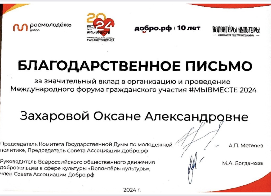 * Развитие молодежи: Проект способствует выявлению и продвижению талантливой молодежи через участие в международных и всероссийских волонтерских культурных событиях.