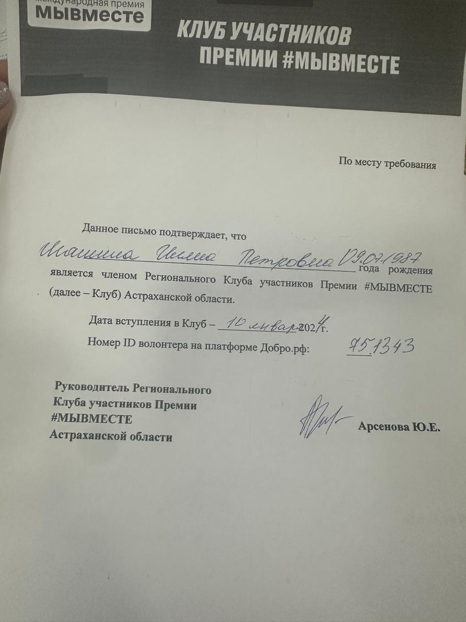 В 2025 году фондом был реализован грантовый проект «Первая добровольческая премия для волонтёров СВО» Премия была учреждена для поддержки мотивации людей, которые с начало СВО безвозмездно трудятся на благо фронта. Люди, которые плетут маскировочные сети зимой в доме культуры без отопления, люди которые заливают окопные свечи, люди, которые выезжают в зону СВО все они заслуживают внимания. Проект был поддержан губернатором Астраханской области Игорем Юрьевичем Бабушкиным. По результатам премии 21 номинант были отмечены памятной статуэткой. В премии было заявлено 21 номинация, каждая из которой уникальна и отвечает узкому профилю волонтера СВО. Так был заявлены такие номинации как «Юный доброволец», «Авто волонтёр года» и тд. Были отмечены и как организации, так и физические лица,